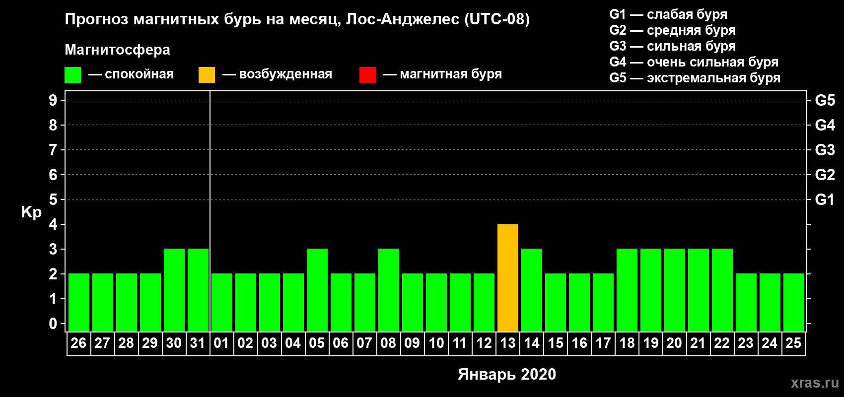 Прогноз магнитных бурь в Лос-Анджелесе — 26 декабря 2019 года