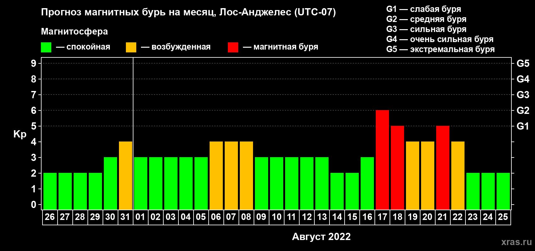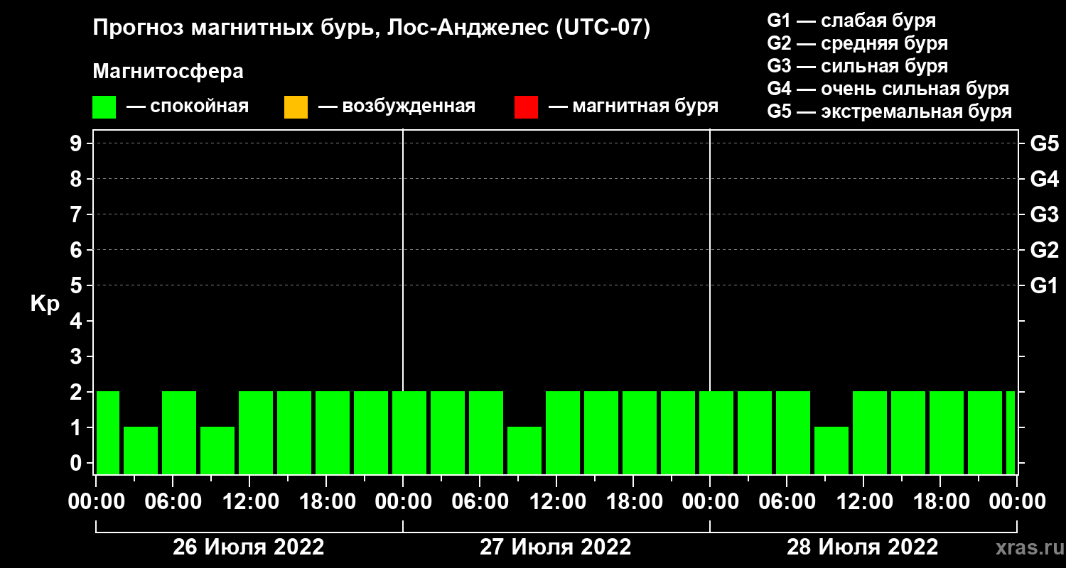 Прогноз магнитных бурь в Лос-Анджелесе — 26 июля 2022 года