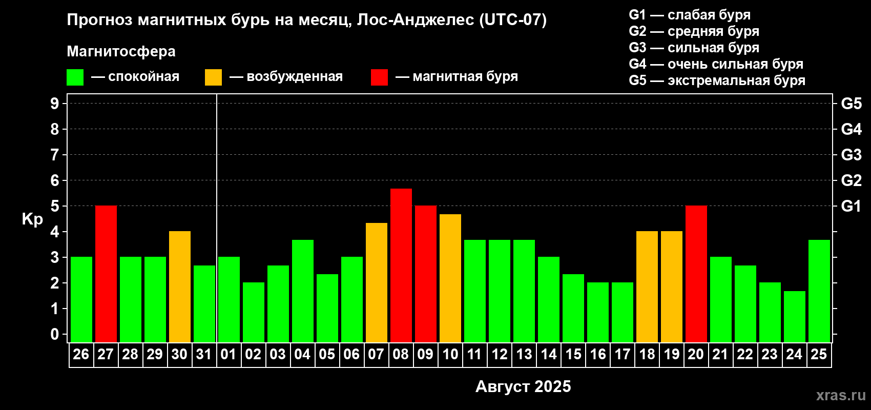 Прогноз магнитных бурь в Лос-Анджелесе — 26 июля 2025 года