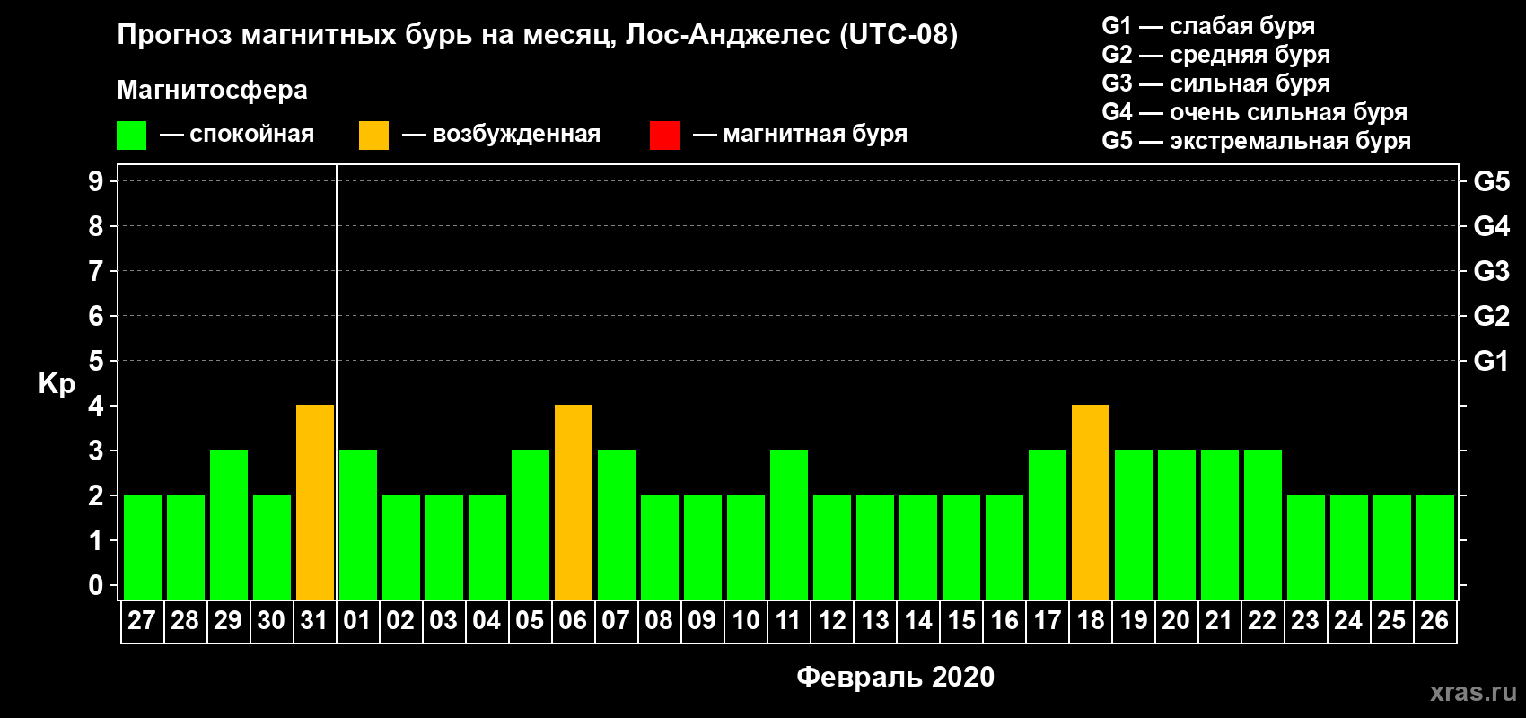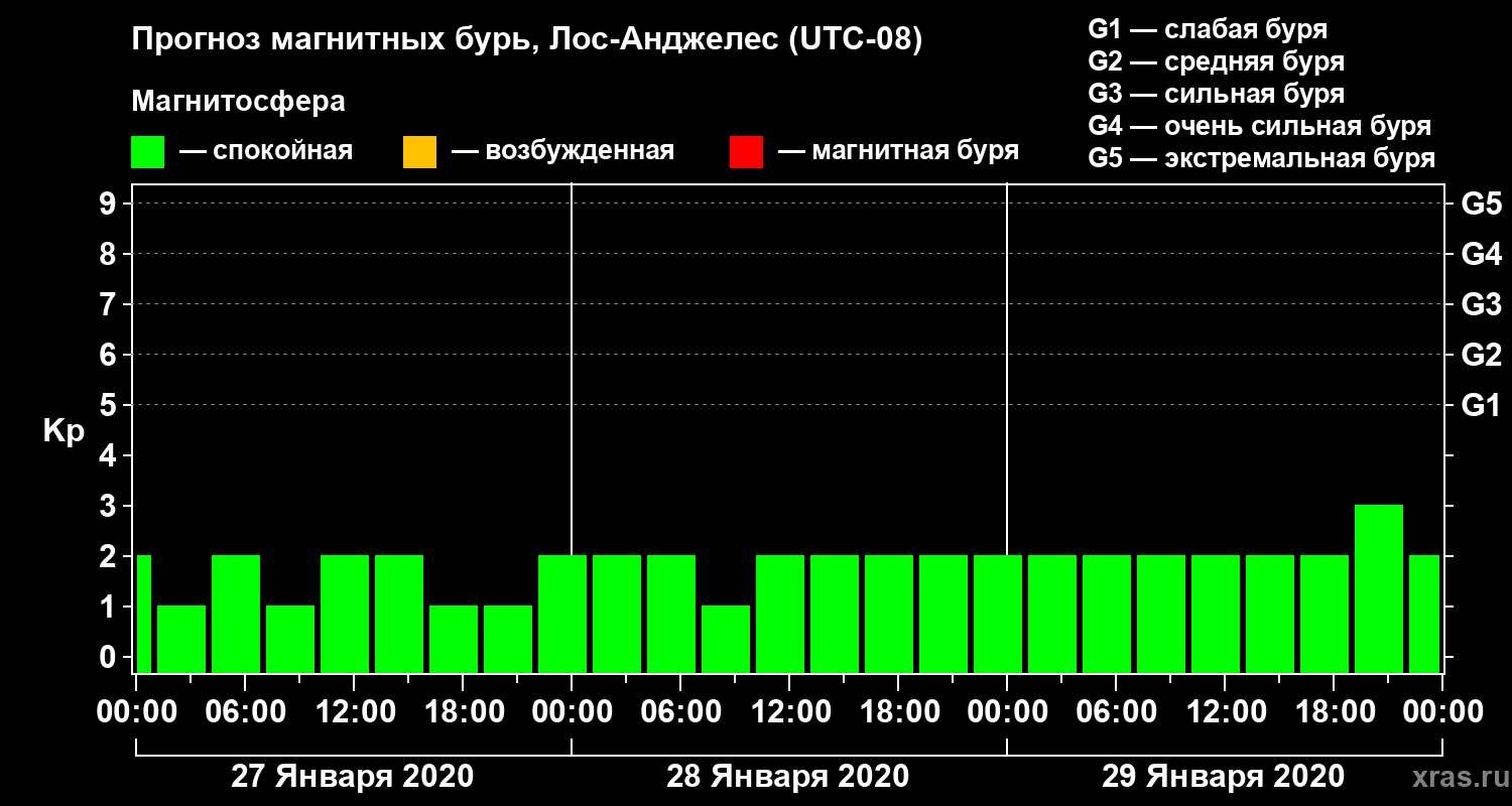 Прогноз магнитных бурь в Лос-Анджелесе — 27 января 2020 года