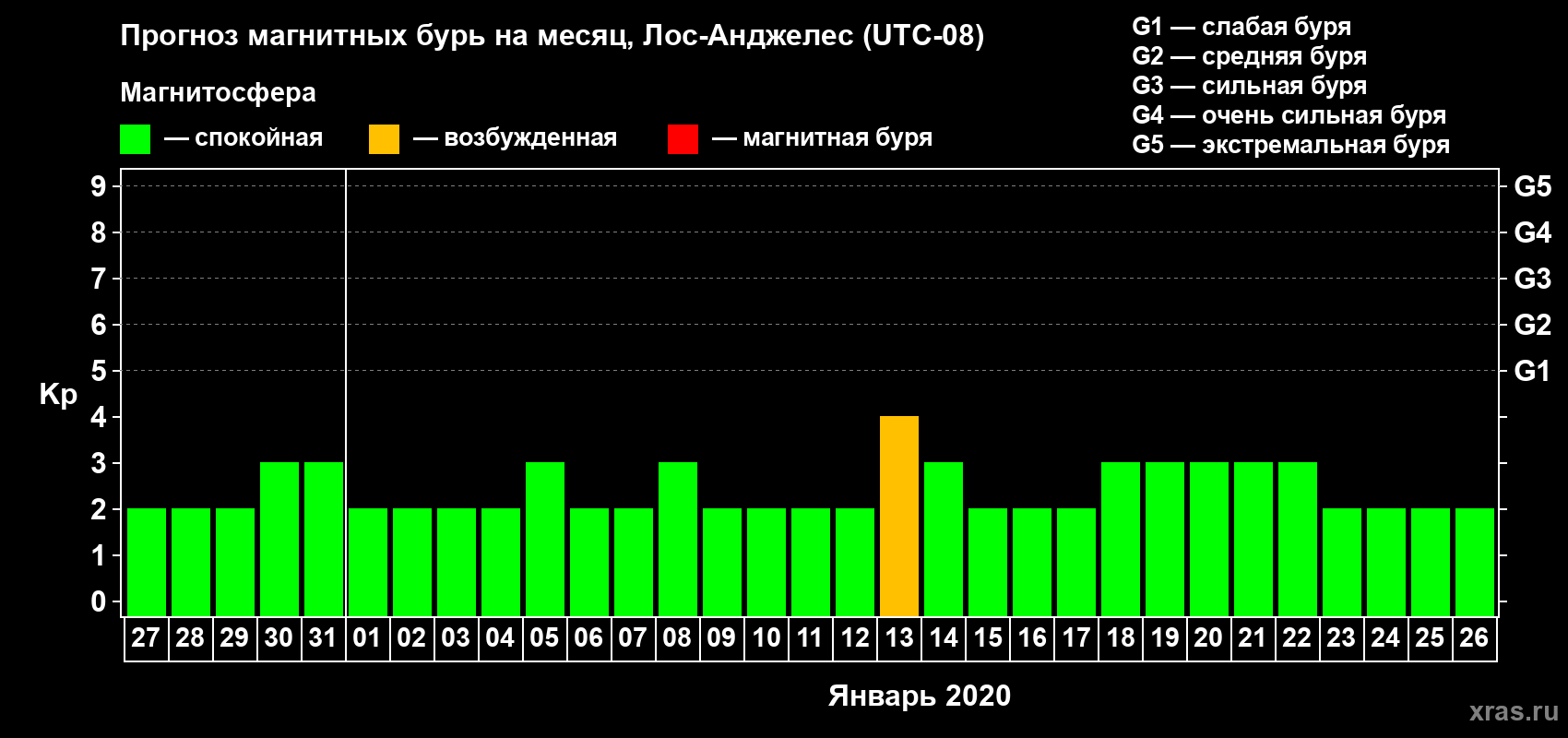 Прогноз магнитных бурь в Лос-Анджелесе — 27 декабря 2019 года