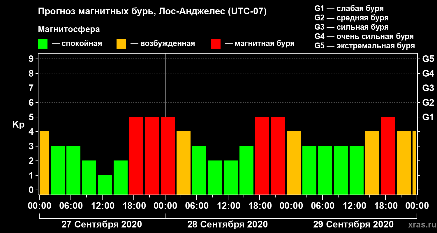 Прогноз магнитных бурь в Лос-Анджелесе — 27 сентября 2020 года