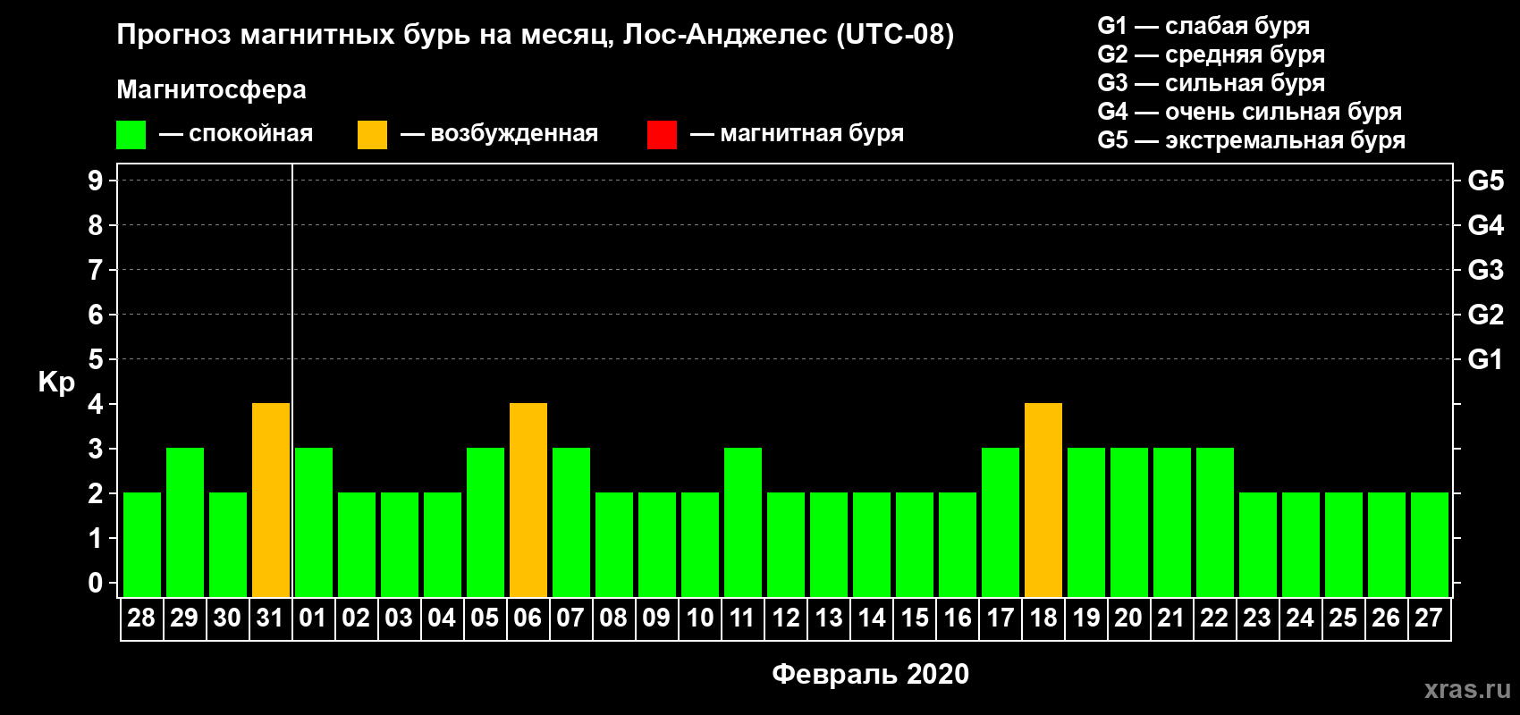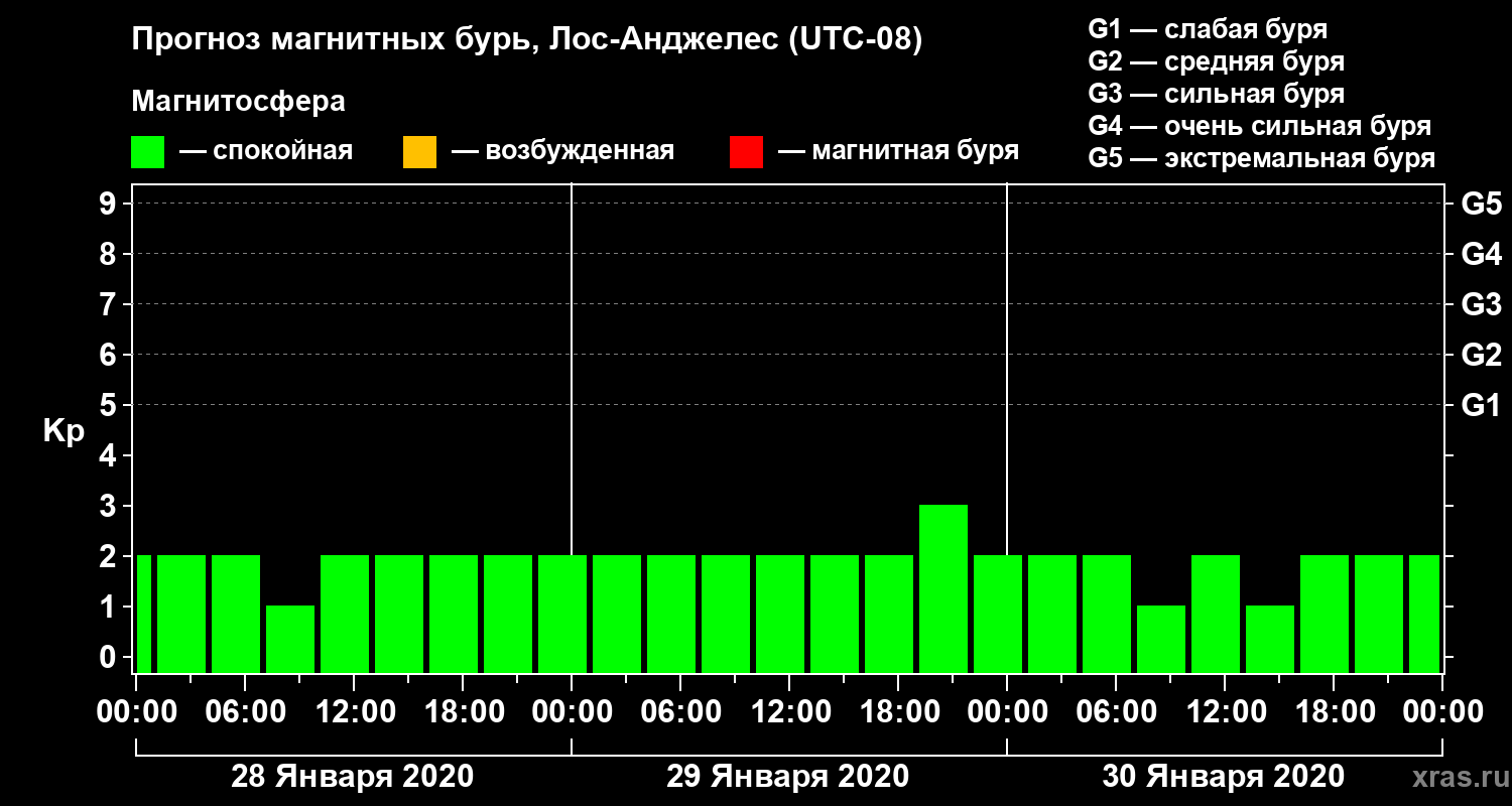 Прогноз магнитных бурь в Лос-Анджелесе — 28 января 2020 года