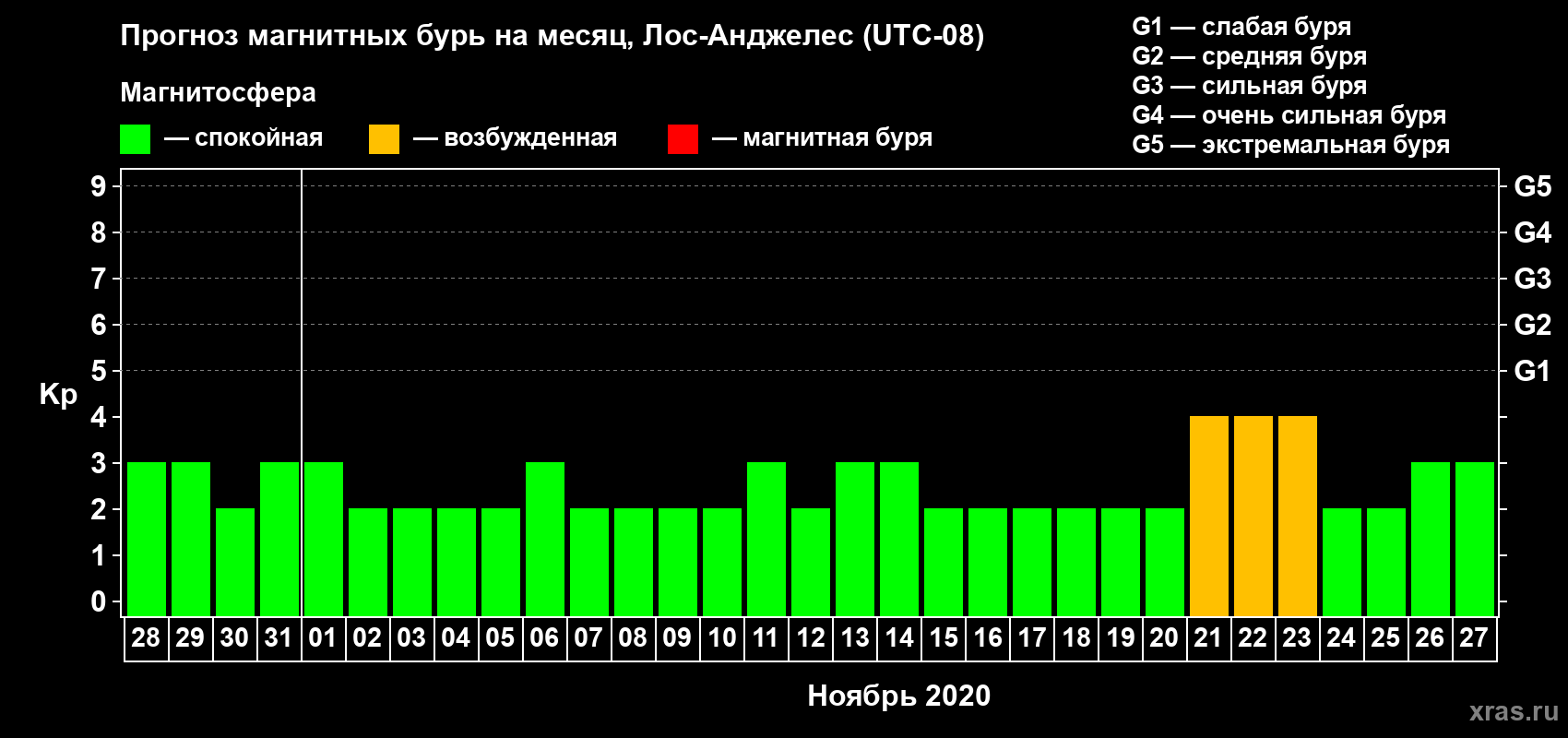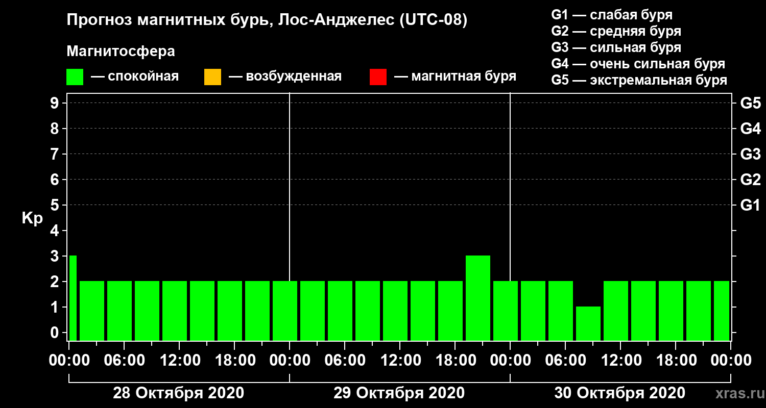 Прогноз магнитных бурь в Лос-Анджелесе — 28 октября 2020 года