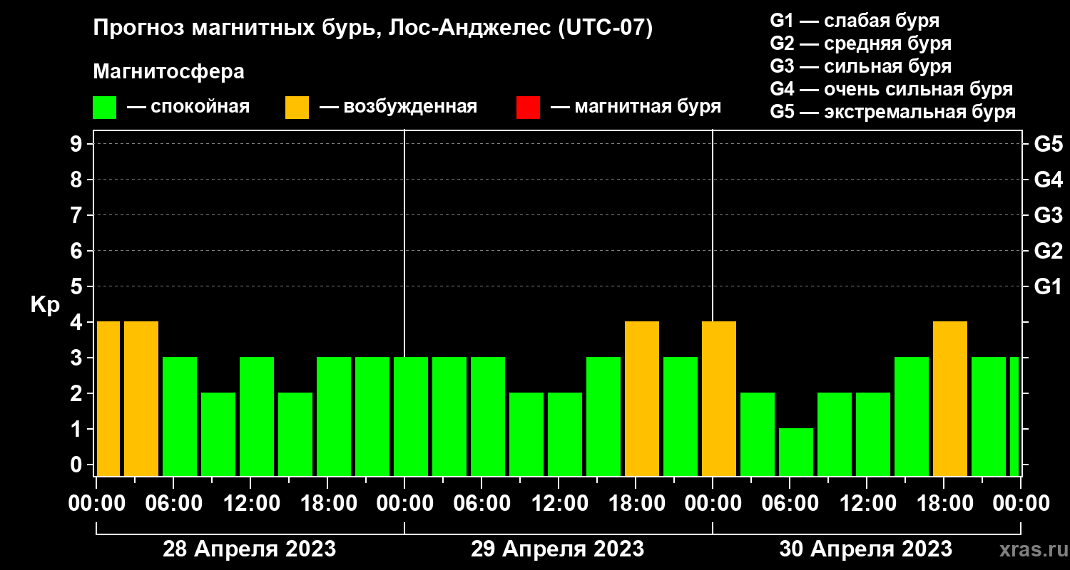 Прогноз магнитных бурь в Лос-Анджелесе — 28 апреля 2023 года
