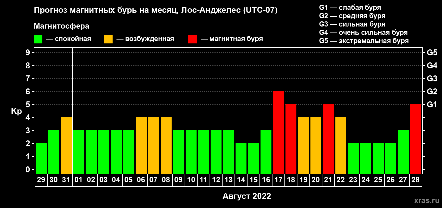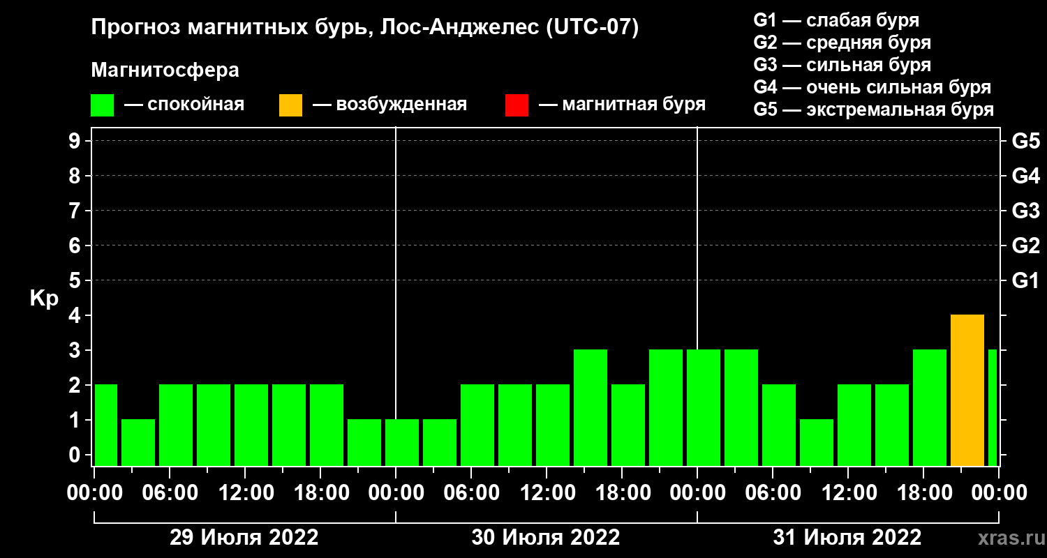Прогноз магнитных бурь в Лос-Анджелесе — 29 июля 2022 года