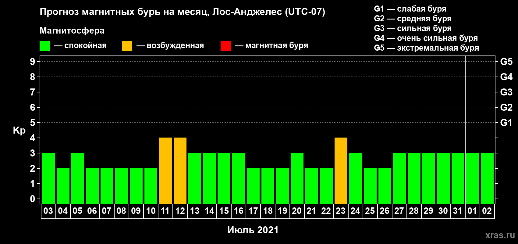 Прогноз магнитных бурь в Лос-Анджелесе — 3 июля 2021 года