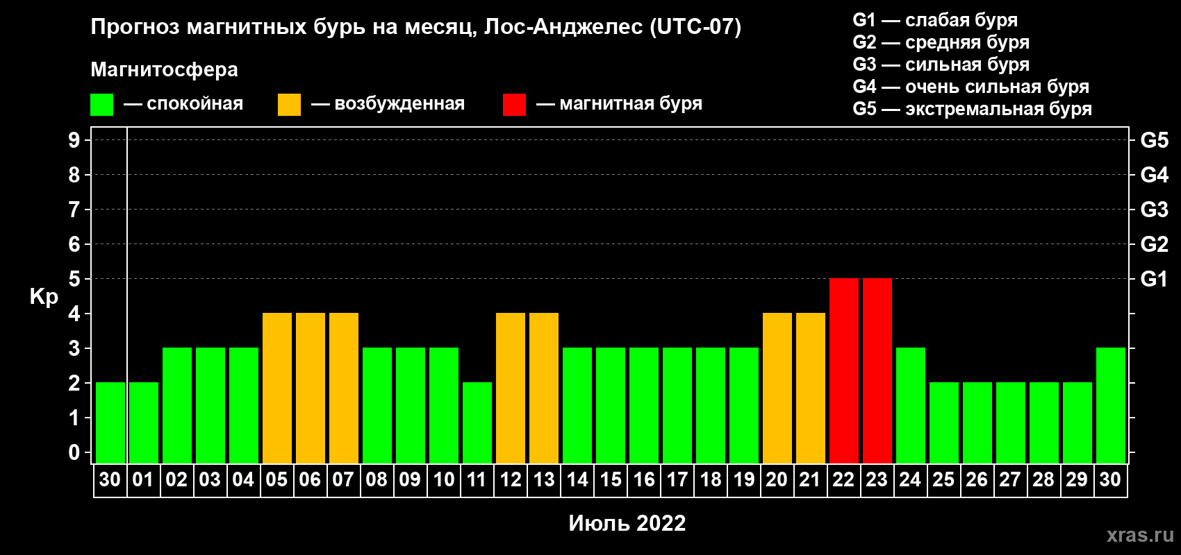 Прогноз магнитных бурь в Лос-Анджелесе — 30 июня 2022 года