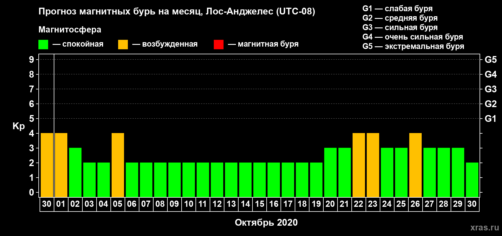 Прогноз магнитных бурь в Лос-Анджелесе — 30 сентября 2020 года