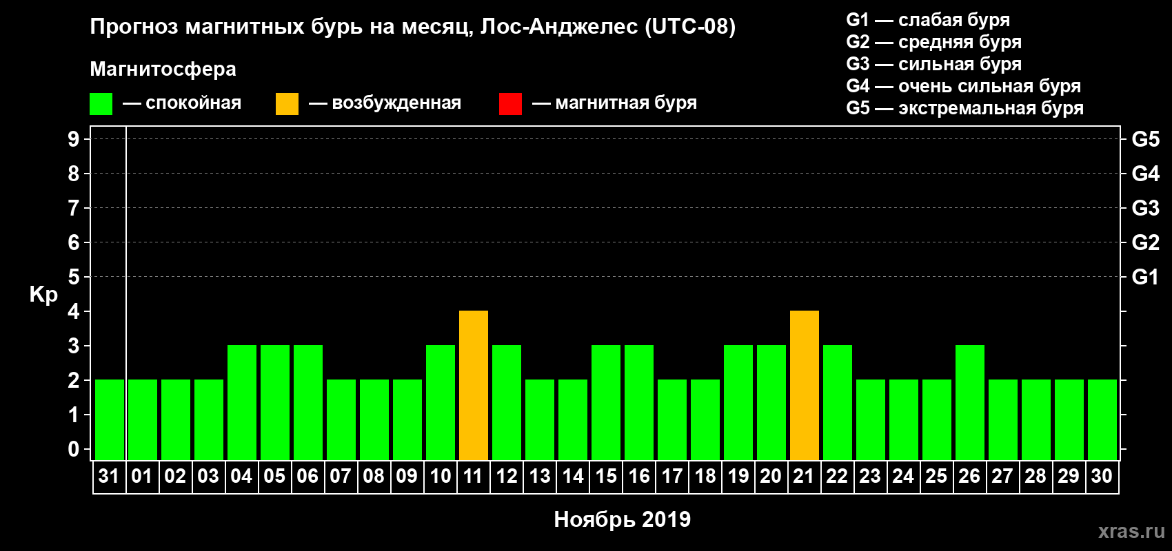Прогноз магнитных бурь в Лос-Анджелесе — 31 октября 2019 года