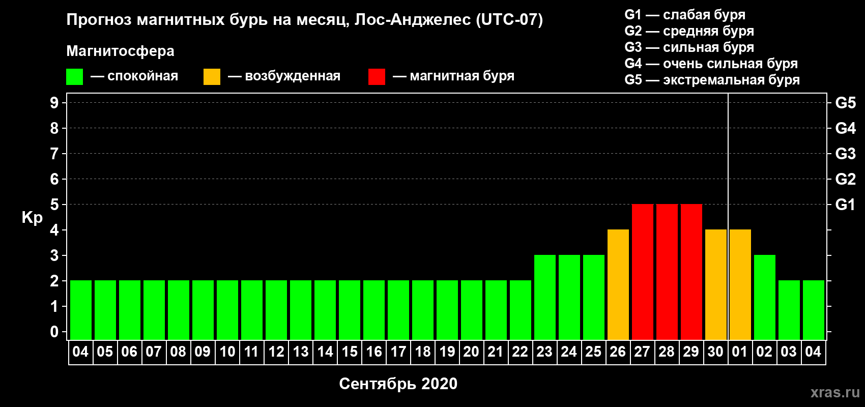 Прогноз магнитных бурь в Лос-Анджелесе — 4 сентября 2020 года