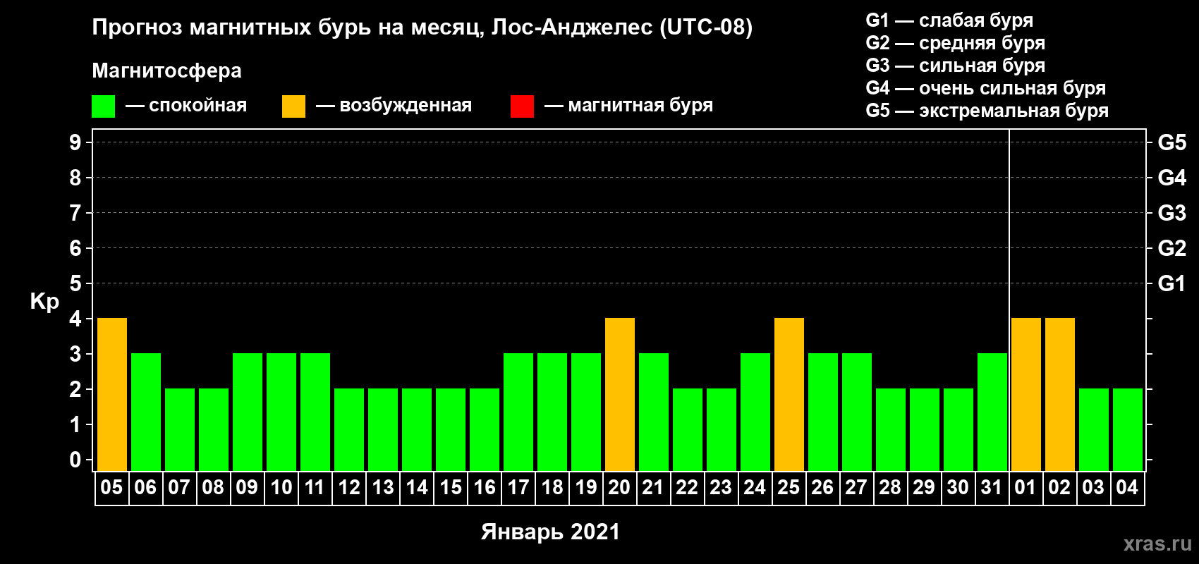 Прогноз магнитных бурь в Лос-Анджелесе — 5 января 2021 года