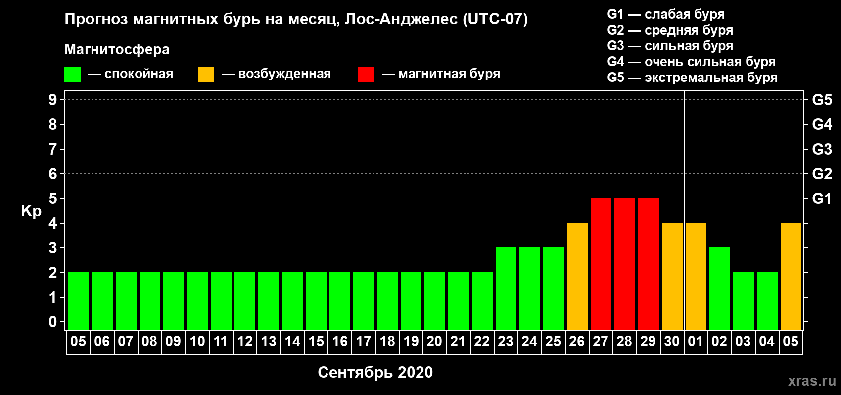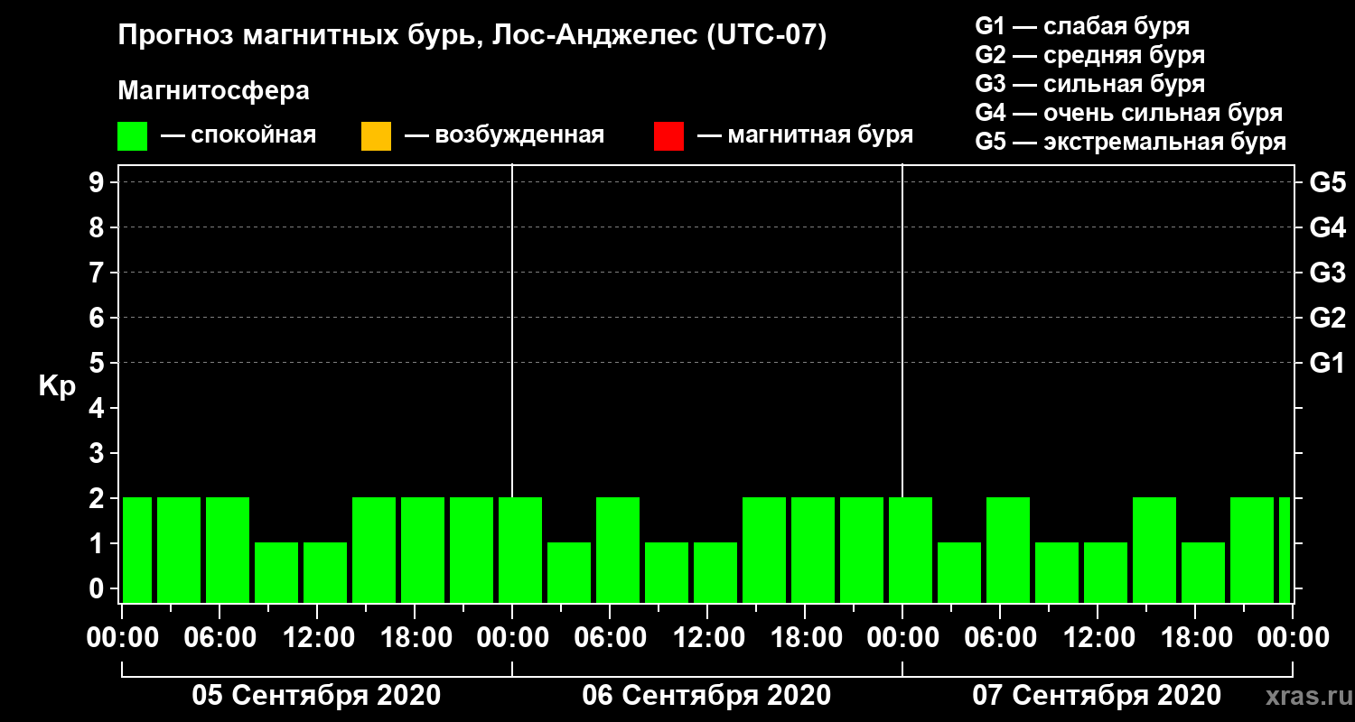 Прогноз магнитных бурь в Лос-Анджелесе — 5 сентября 2020 года