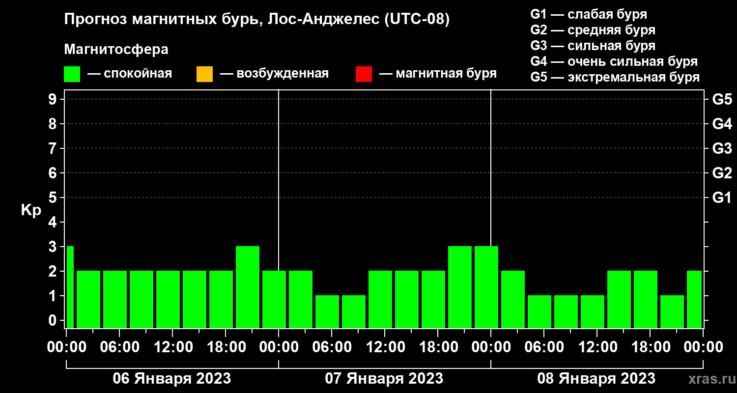 Прогноз магнитных бурь в Лос-Анджелесе — 6 января 2023 года