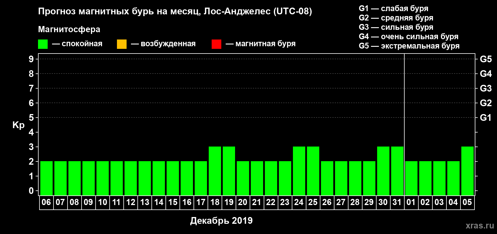 Прогноз магнитных бурь в Лос-Анджелесе — 6 декабря 2019 года
