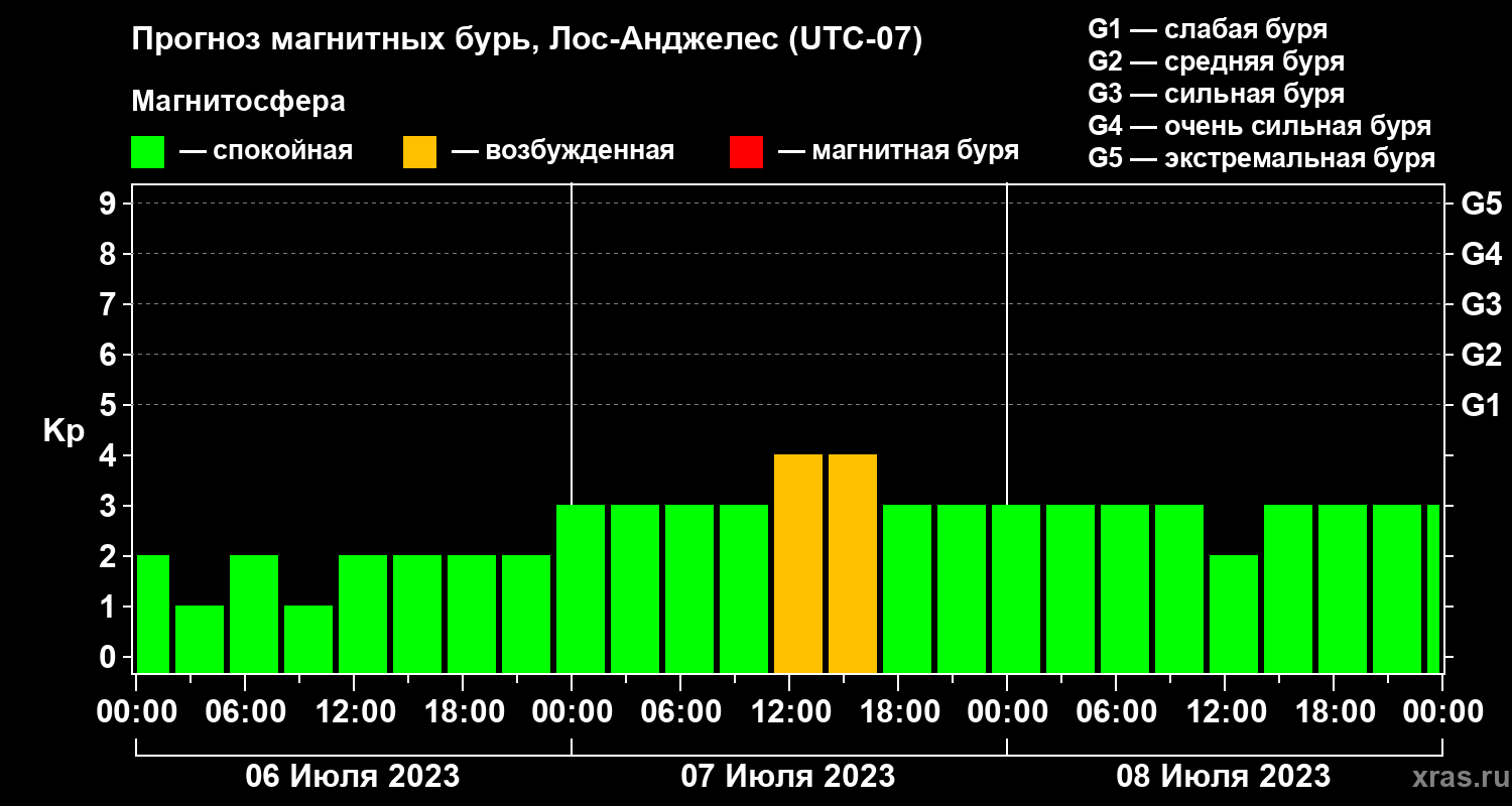 Прогноз магнитных бурь в Лос-Анджелесе — 6 июля 2023 года
