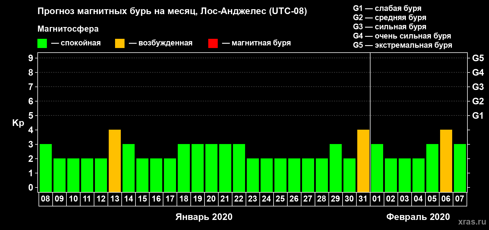 Прогноз магнитных бурь в Лос-Анджелесе — 8 января 2020 года