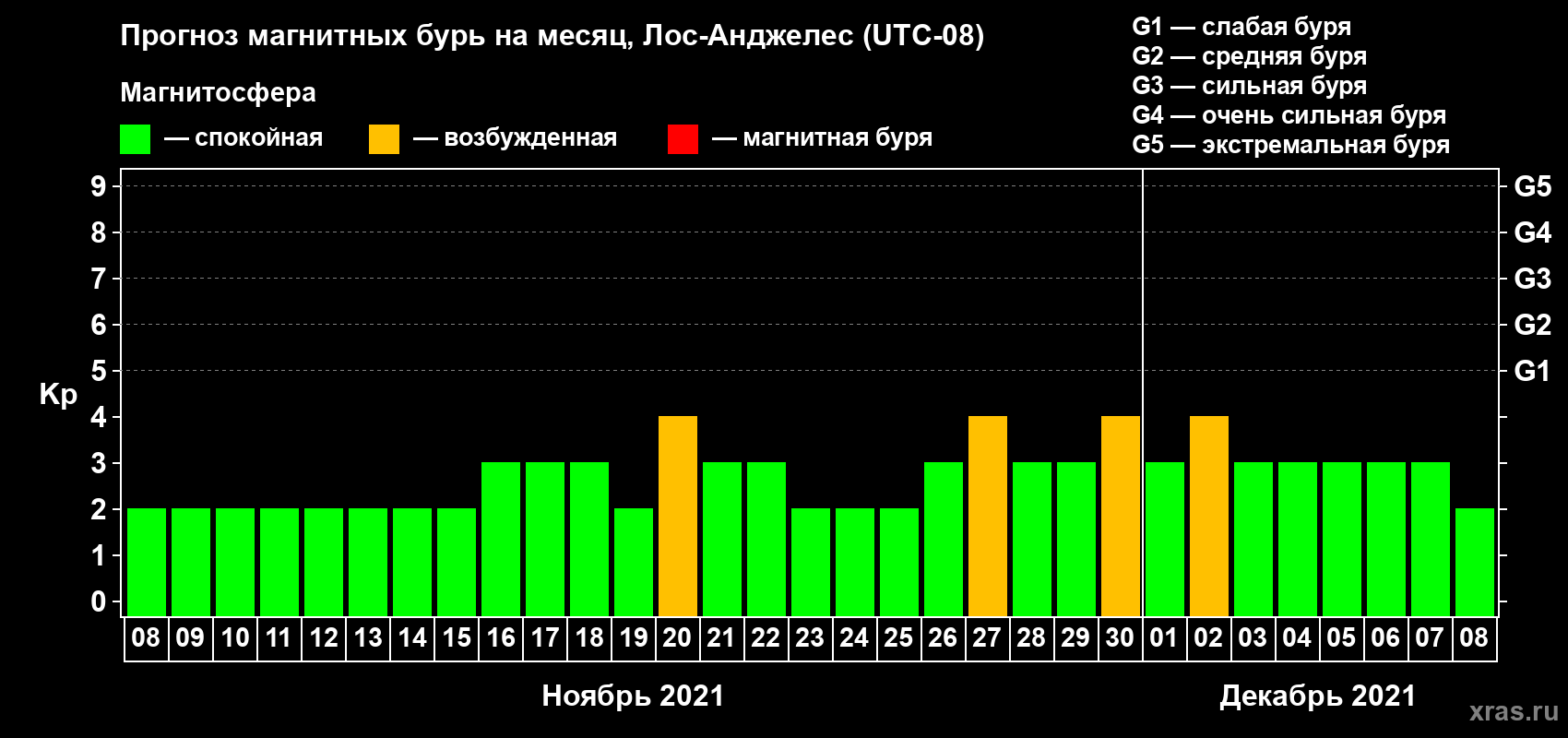 Прогноз магнитных бурь в Лос-Анджелесе — 8 ноября 2021 года