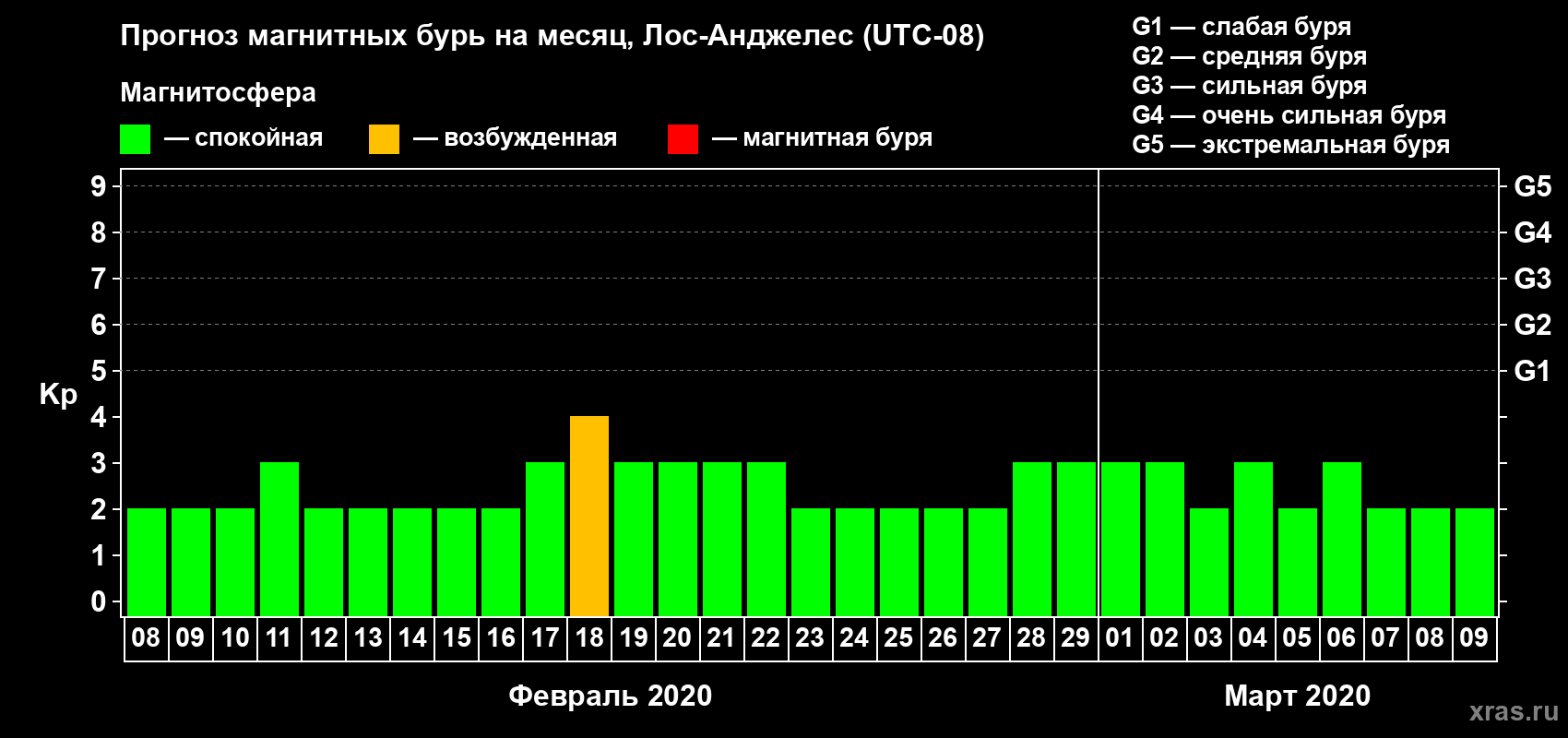 Прогноз магнитных бурь в Лос-Анджелесе — 8 февраля 2020 года