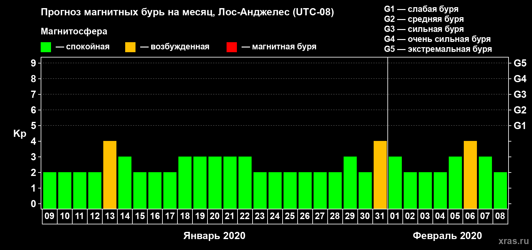 Прогноз магнитных бурь в Лос-Анджелесе — 9 января 2020 года