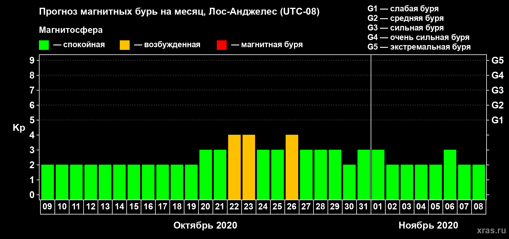Прогноз магнитных бурь в Лос-Анджелесе — 9 октября 2020 года