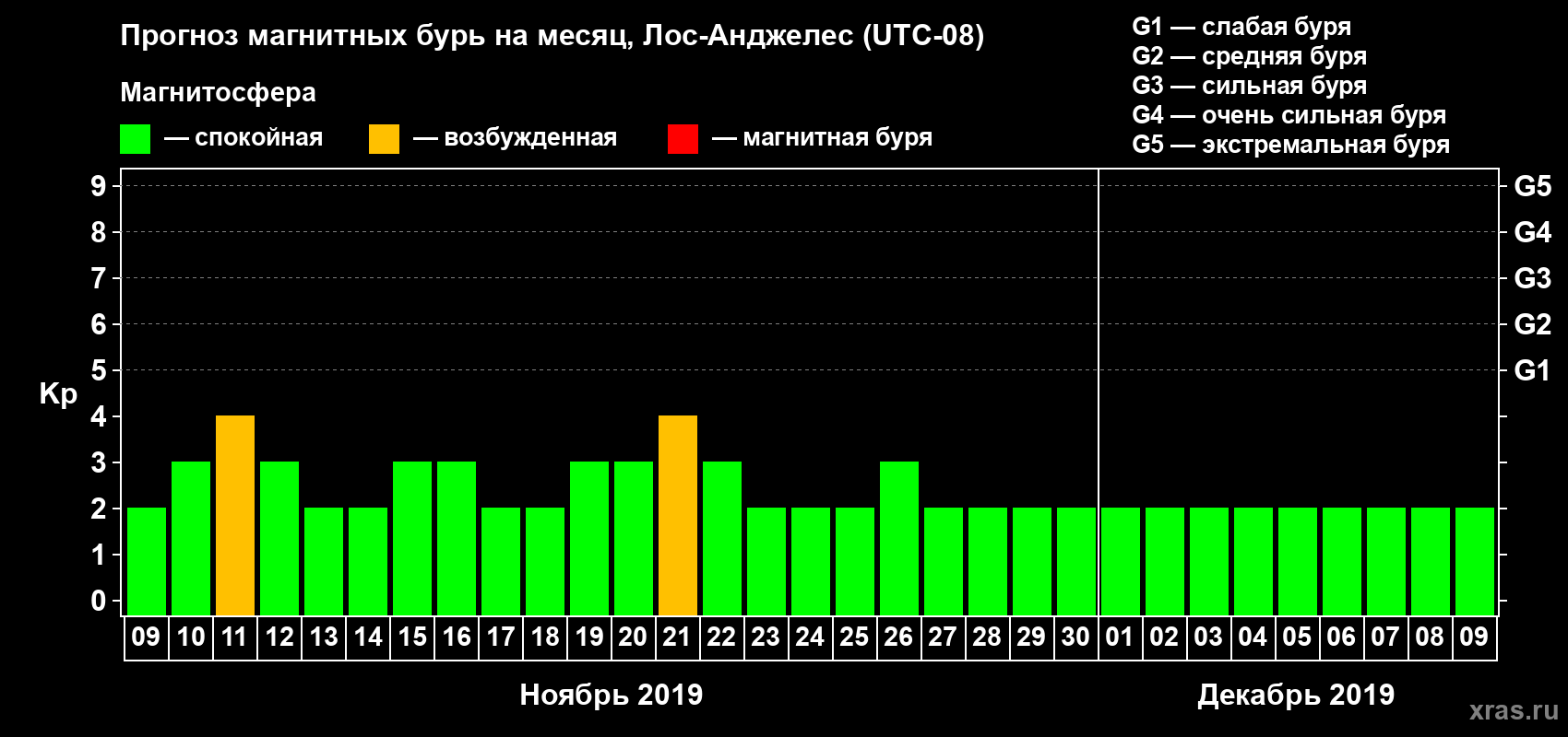 Прогноз магнитных бурь в Лос-Анджелесе — 9 ноября 2019 года