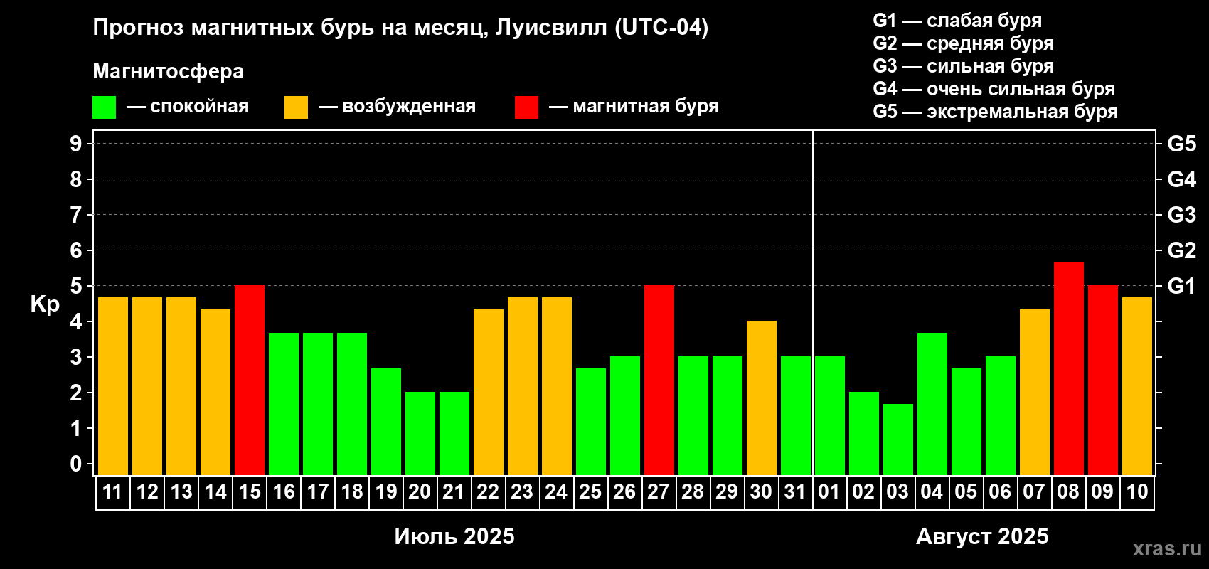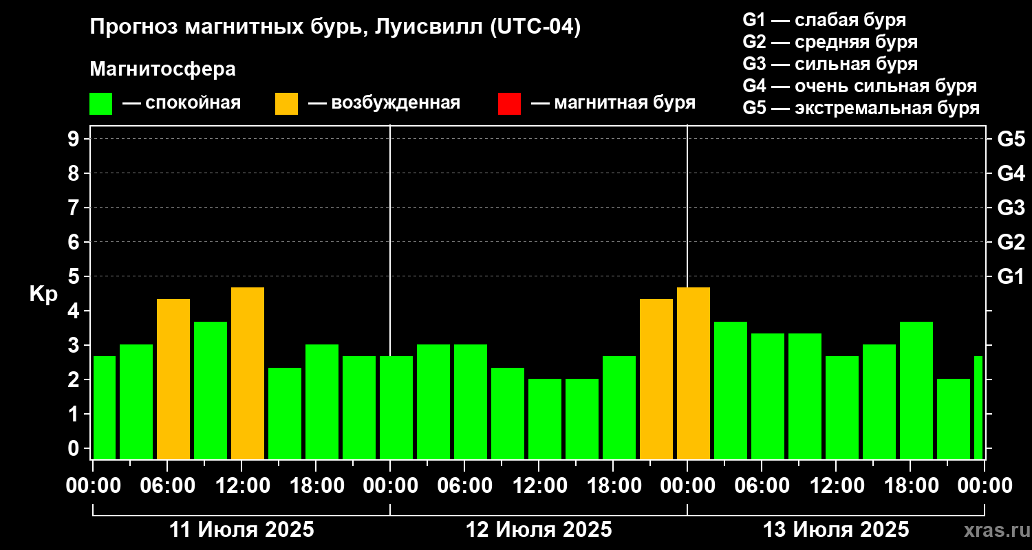 Прогноз магнитных бурь в Луисвилле — 11 июля 2025 года