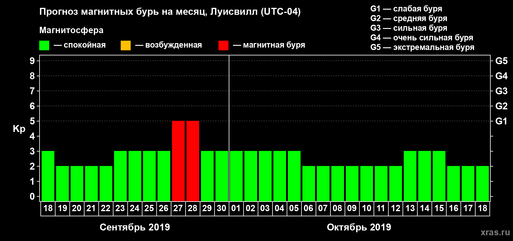 Прогноз магнитных бурь в Луисвилле — 18 сентября 2019 года