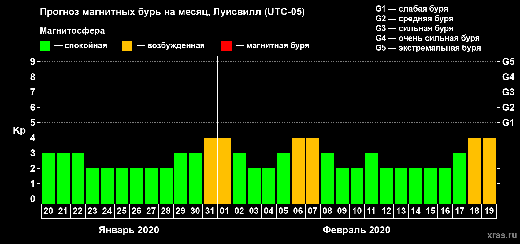 Прогноз магнитных бурь в Луисвилле — 20 января 2020 года