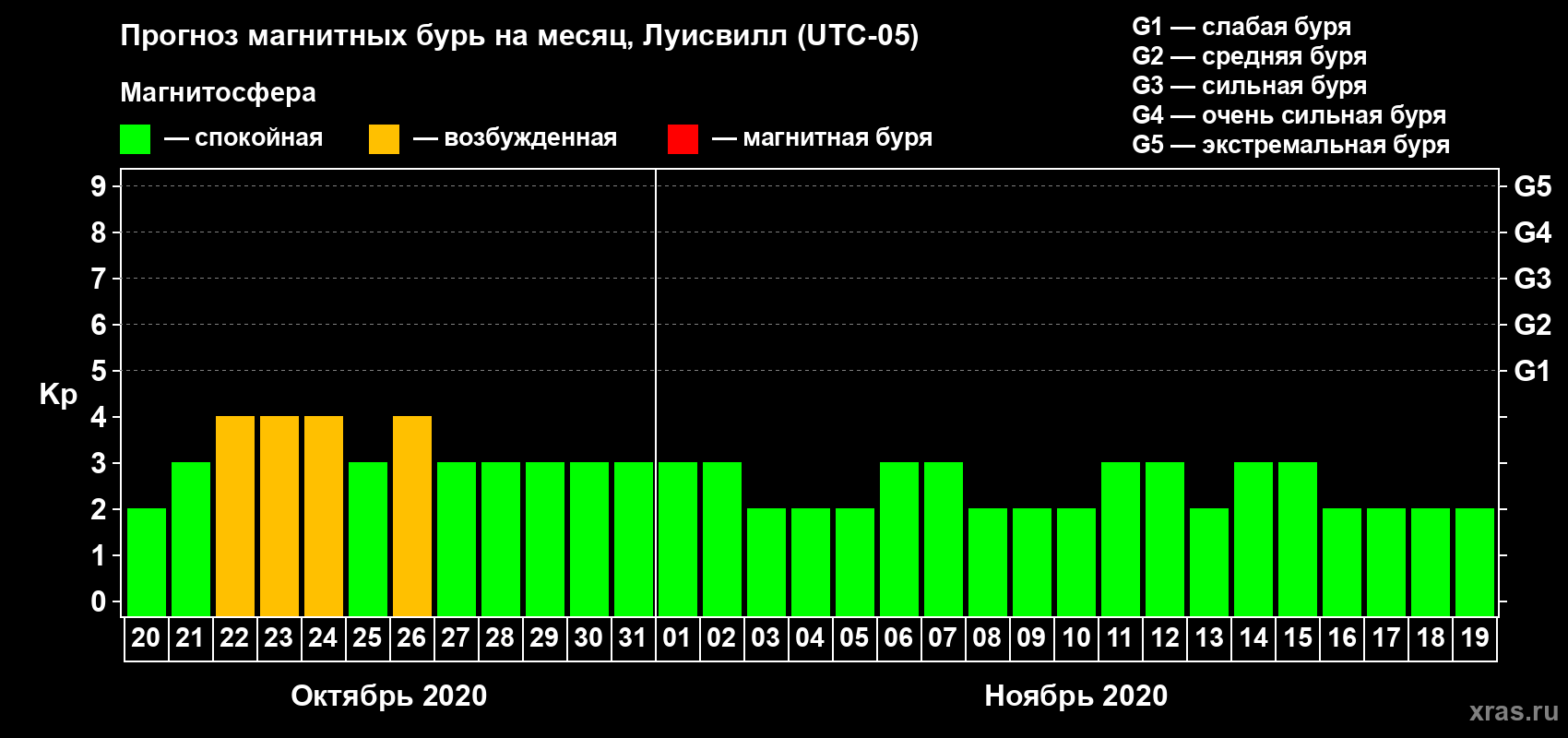 Прогноз магнитных бурь в Луисвилле на 20 октября 2020 года