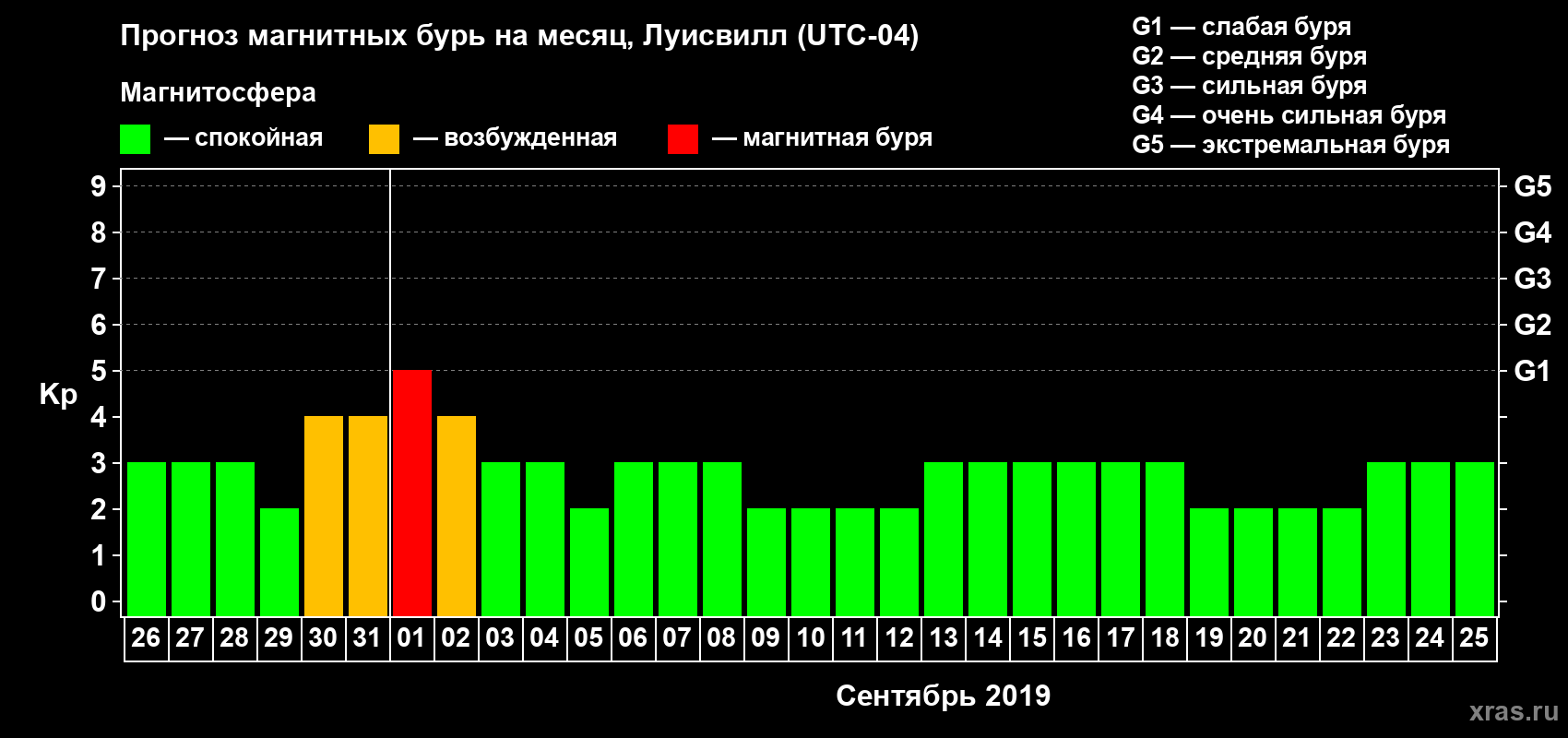 Прогноз магнитных бурь в Луисвилле — 26 августа 2019 года