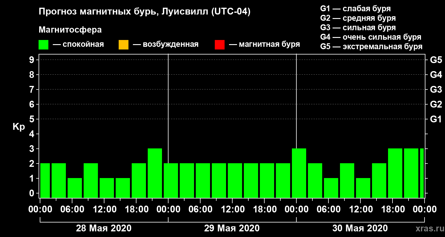 Прогноз магнитных бурь в Луисвилле — 28 мая 2020 года
