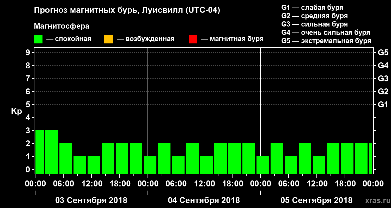 Прогноз магнитных бурь в Луисвилле — 3 сентября 2018 года