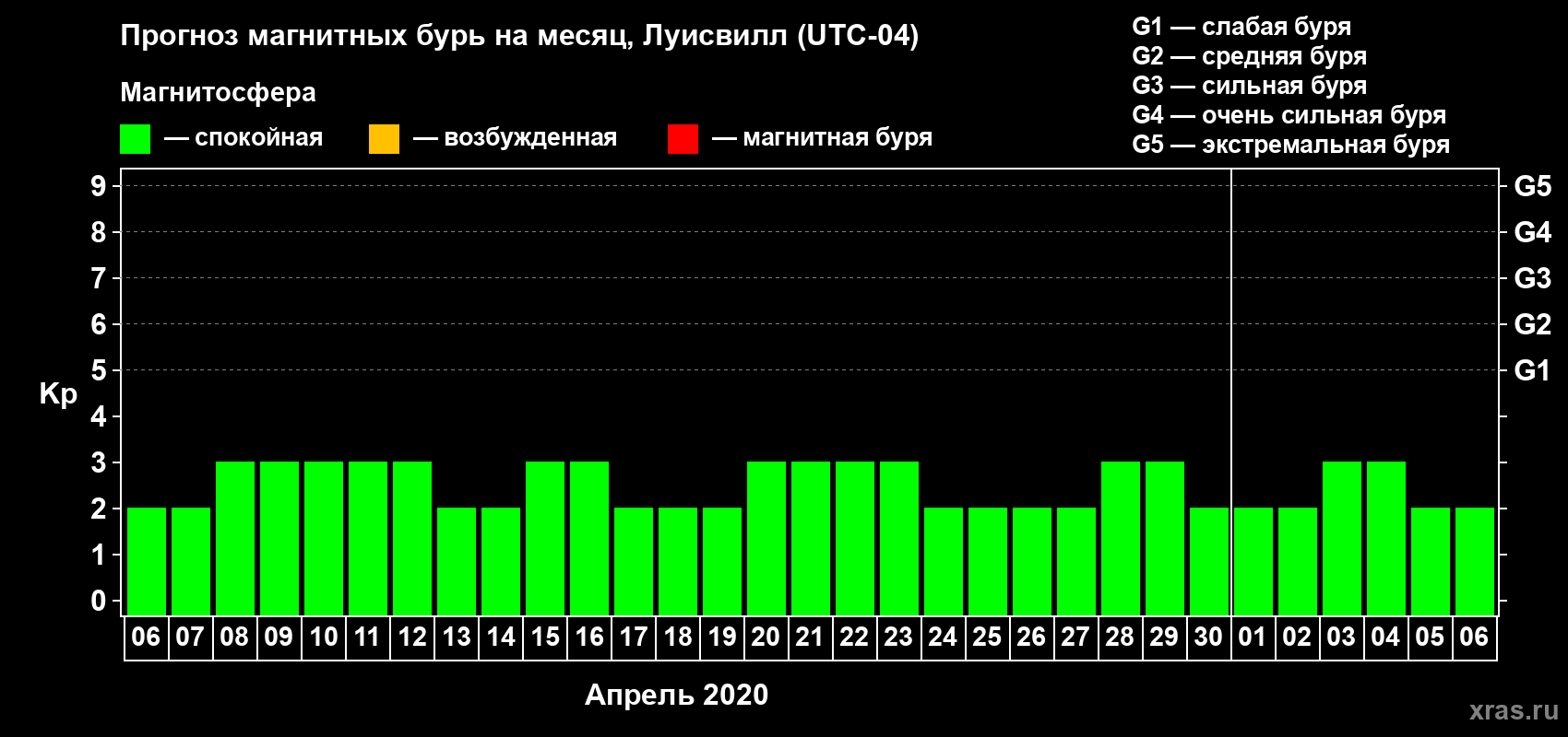 Прогноз магнитных бурь в Луисвилле — 6 апреля 2020 года