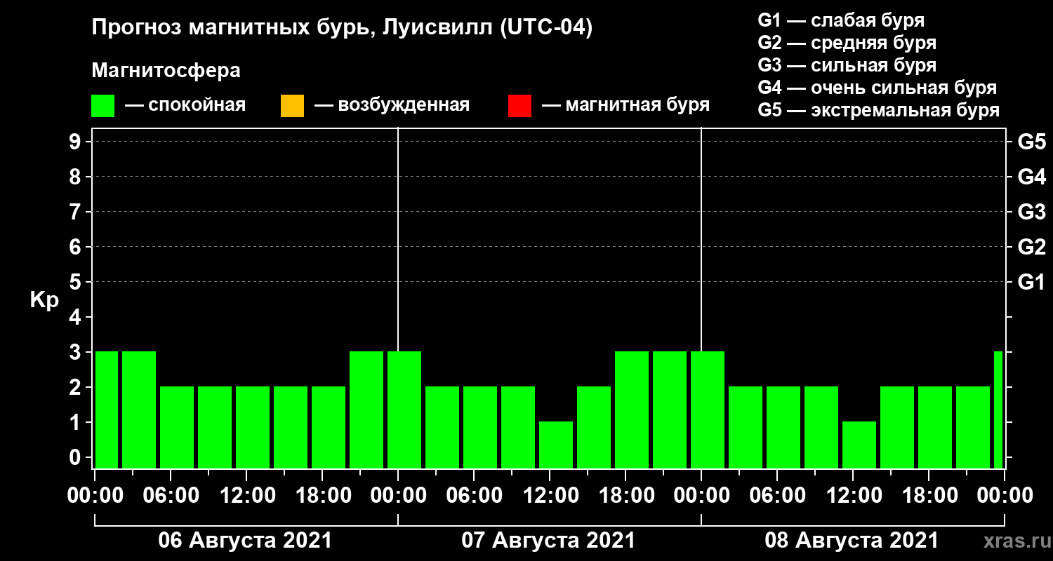 Прогноз магнитных бурь в Луисвилле на 6 августа 2021 года