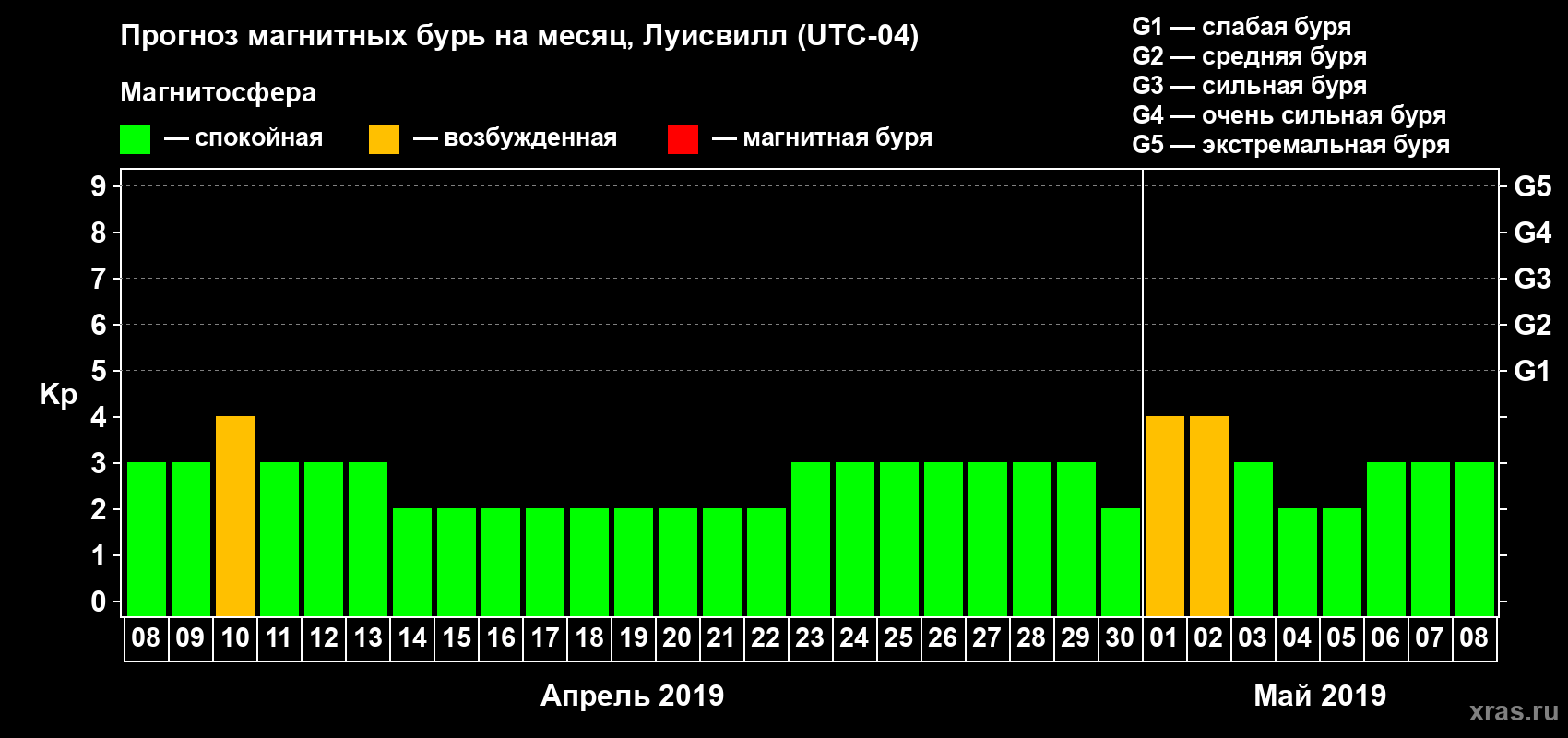 Прогноз магнитных бурь в Луисвилле на 8 апреля 2019 года
