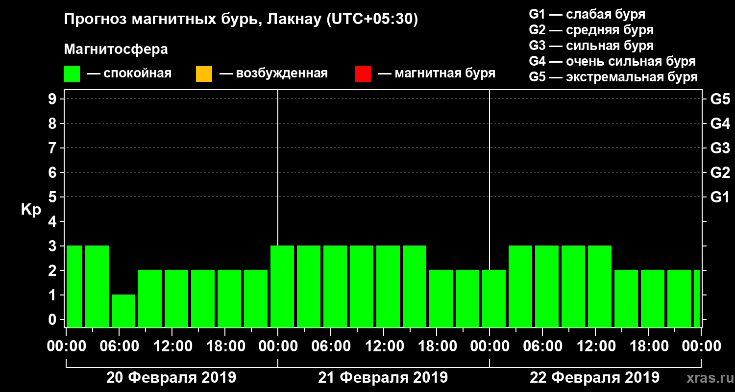 Прогноз магнитных бурь Лакнау — 20 февраля 2019 года