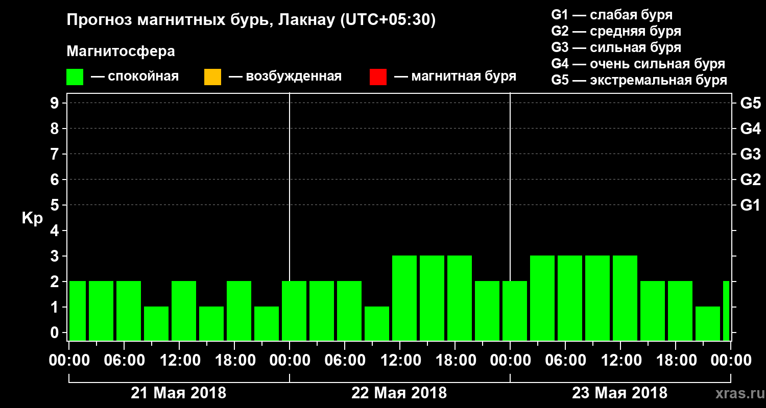 Прогноз магнитных бурь Лакнау — 21 мая 2018 года