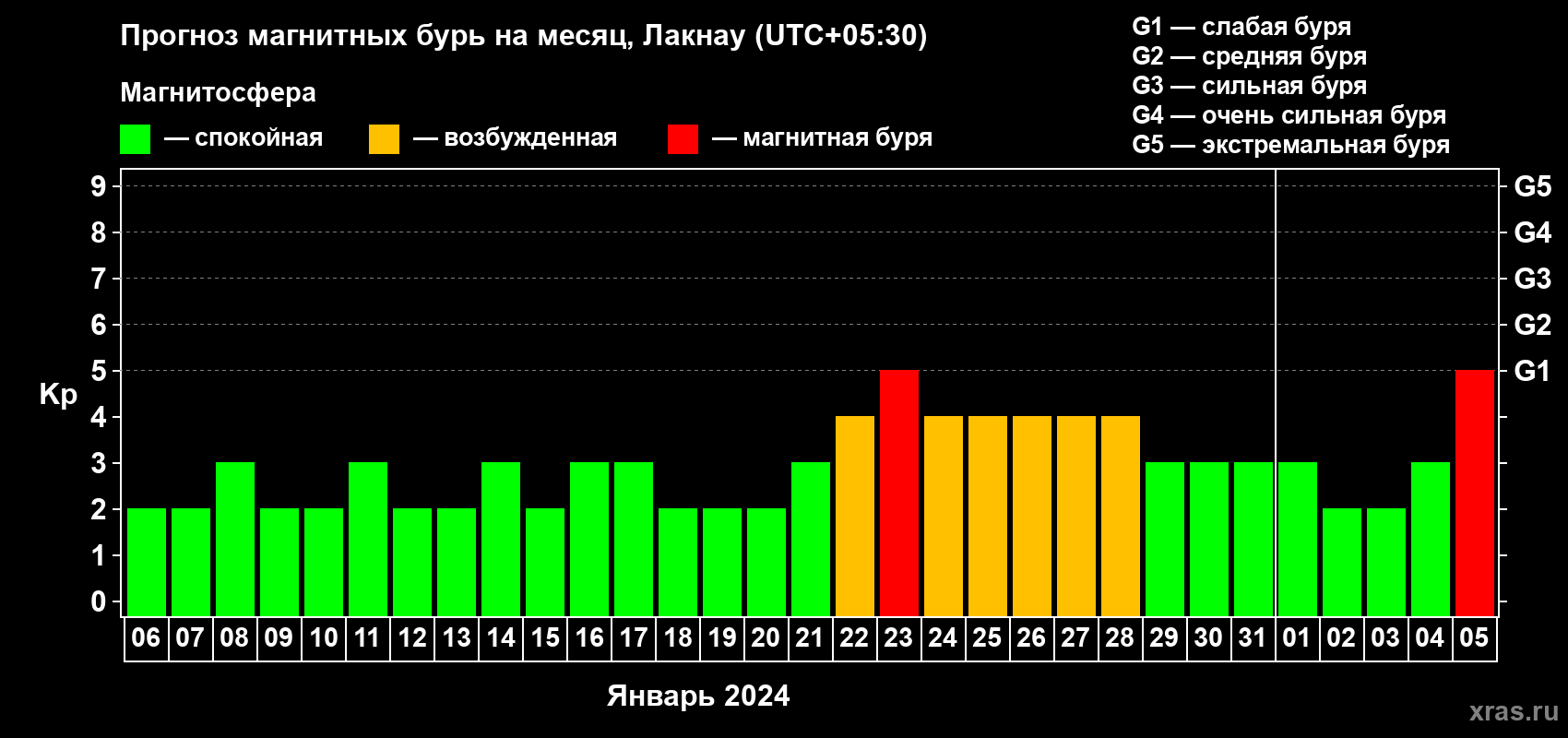 Прогноз магнитных бурь Лакнау — 6 января 2024 года