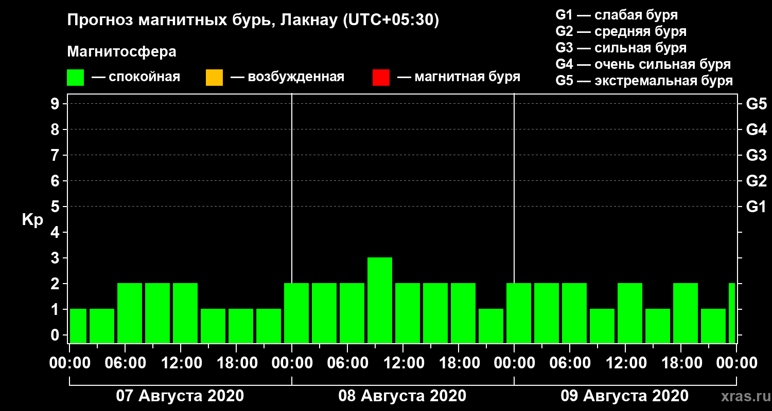 Прогноз магнитных бурь Лакнау — 7 августа 2020 года