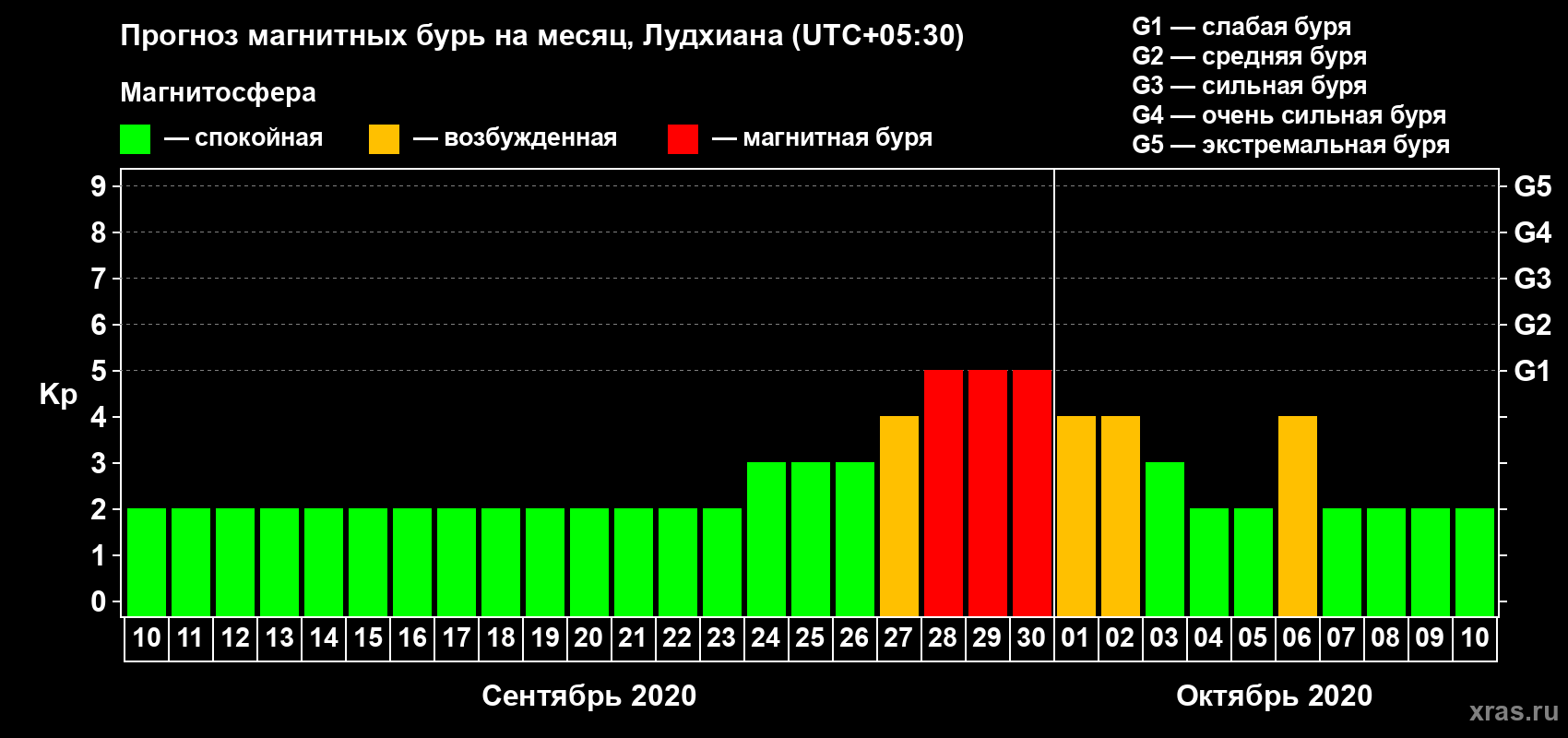 Прогноз магнитных бурь в Лудхиане — 10 сентября 2020 года