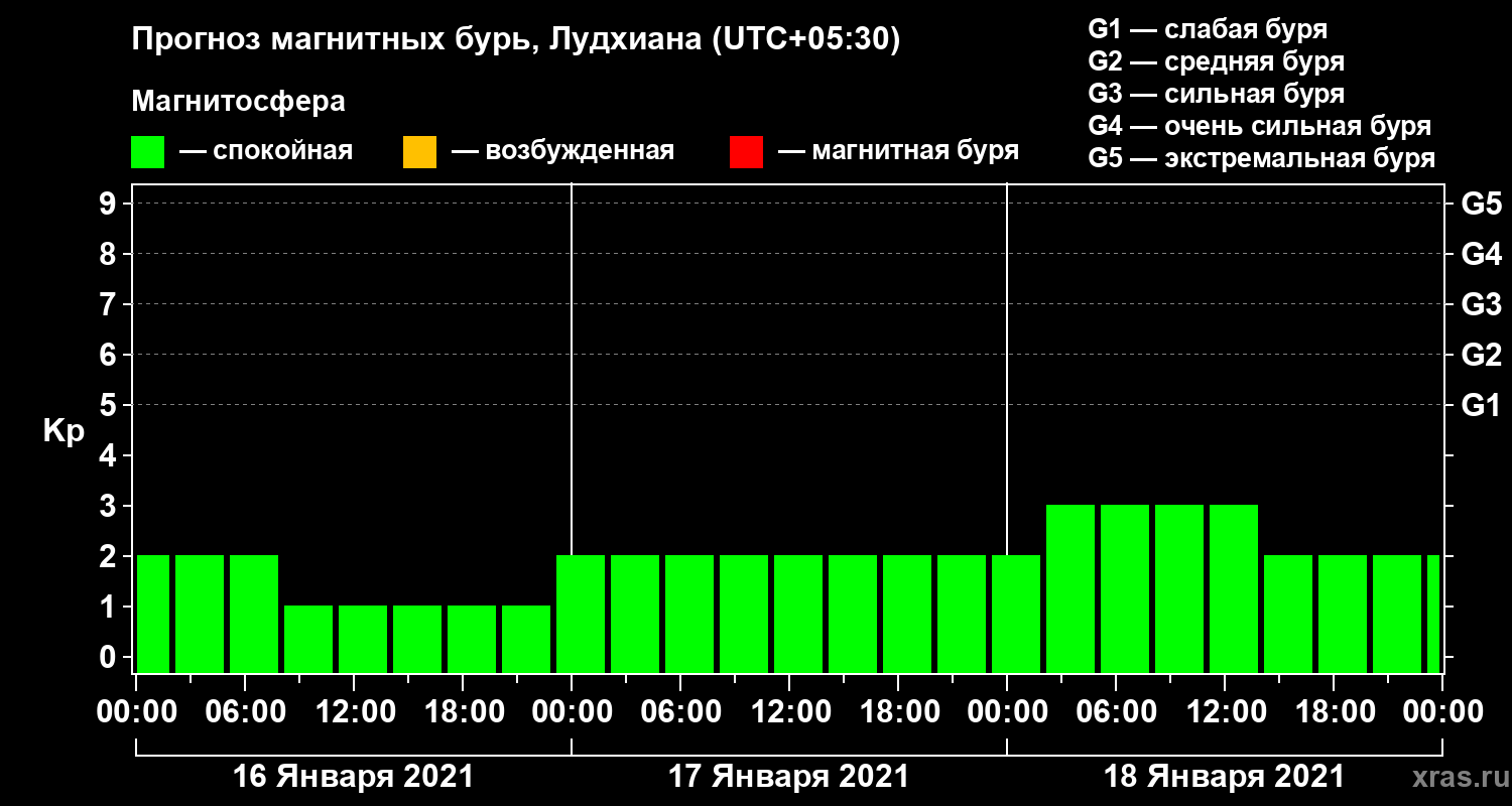 Прогноз магнитных бурь в Лудхиане — 16 января 2021 года
