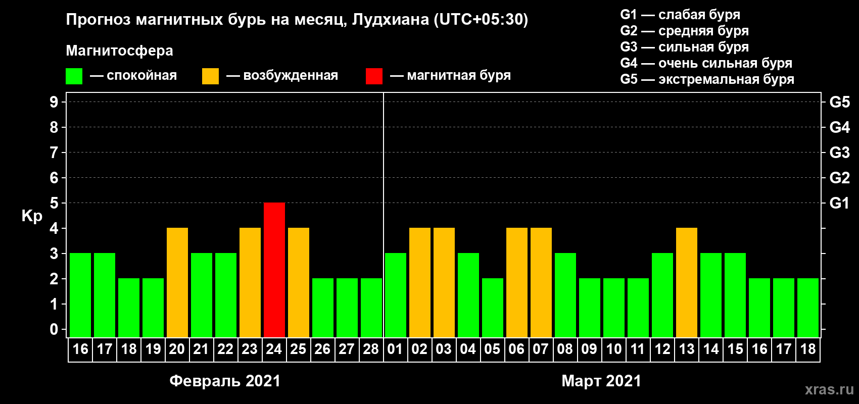 Прогноз магнитных бурь в Лудхиане — 16 февраля 2021 года