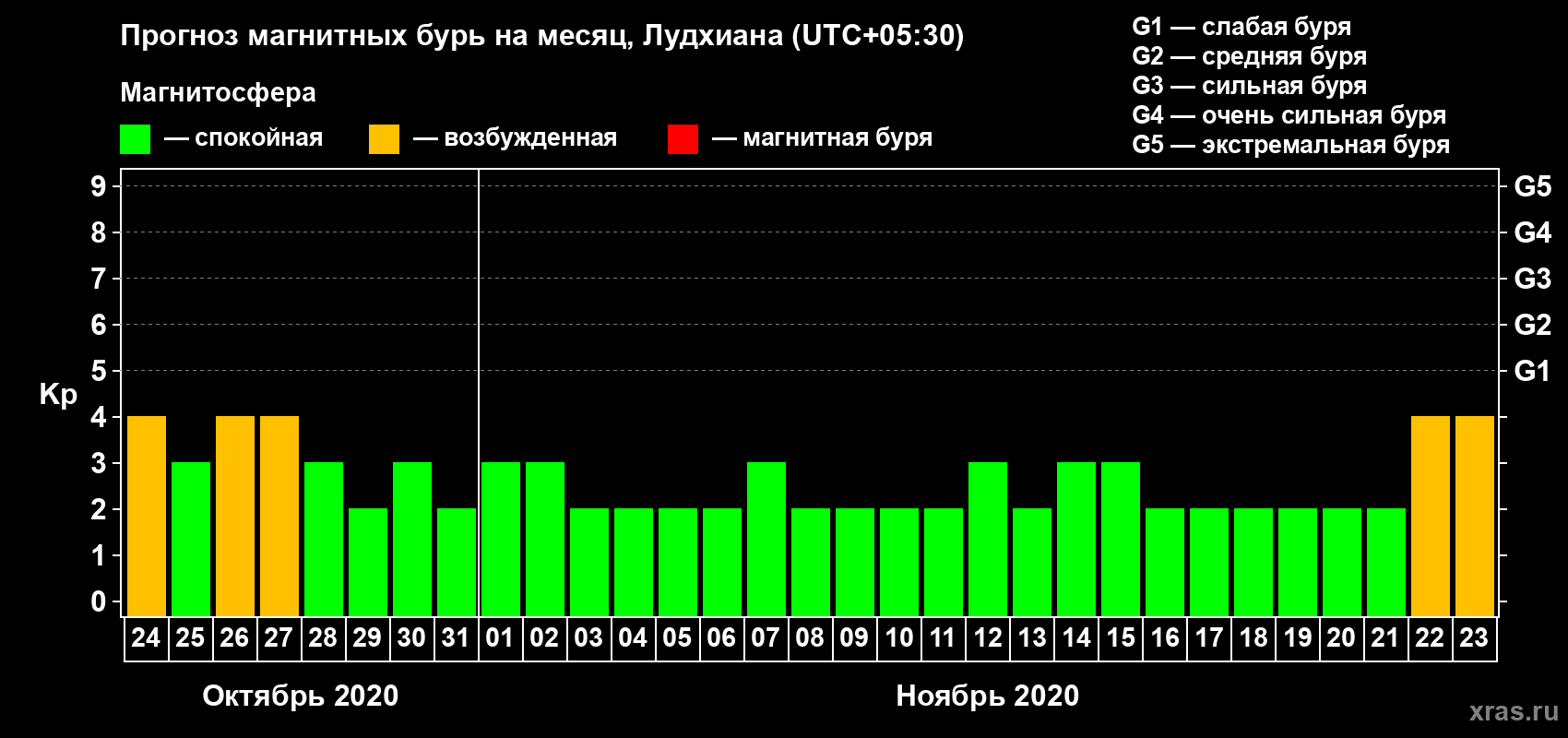 Прогноз магнитных бурь в Лудхиане — 24 октября 2020 года