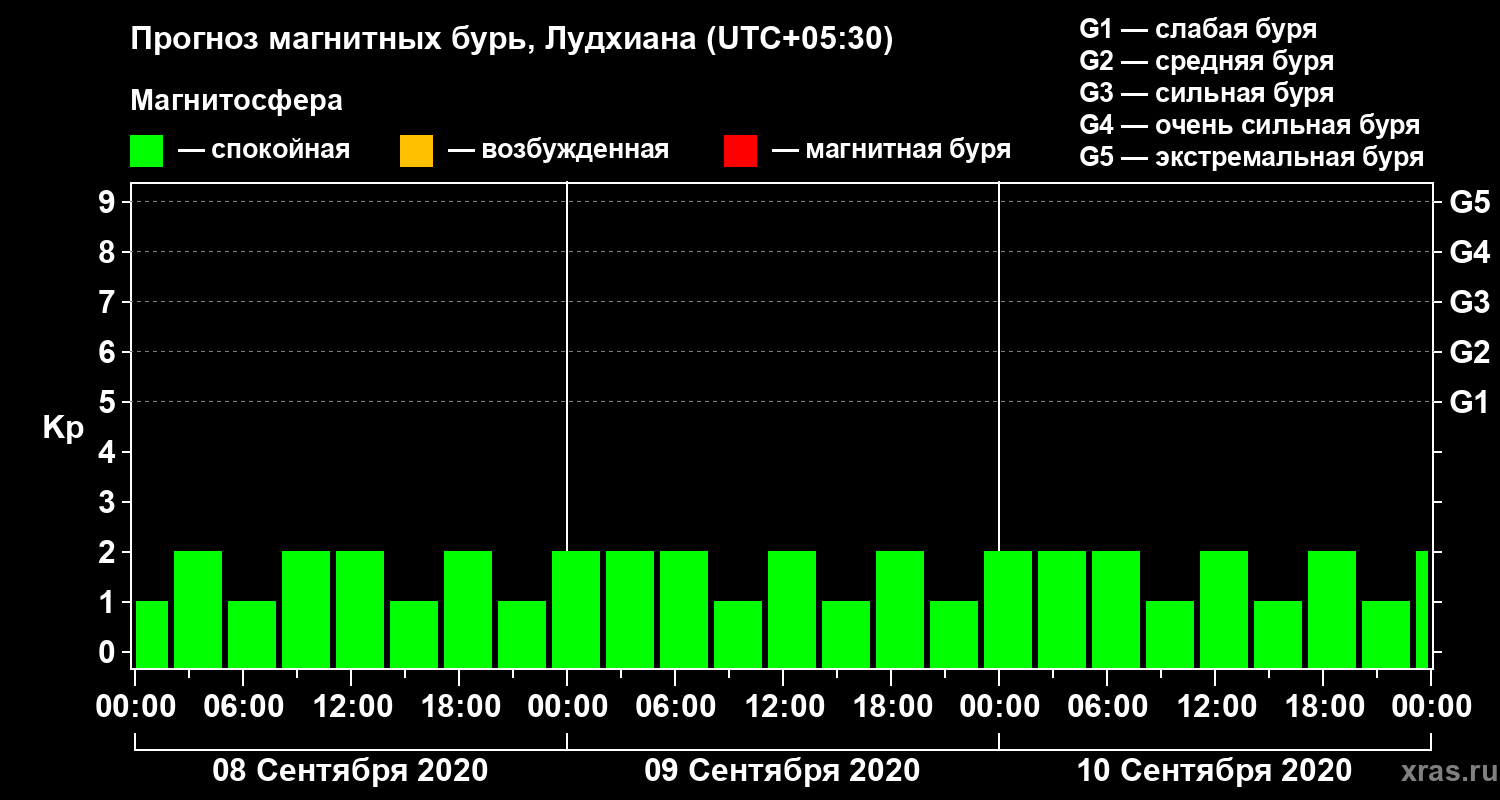 Прогноз магнитных бурь в Лудхиане — 8 сентября 2020 года