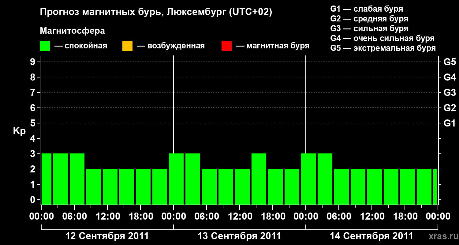 Прогноз магнитных бурь в Люксембурге — 12 сентября 2011 года