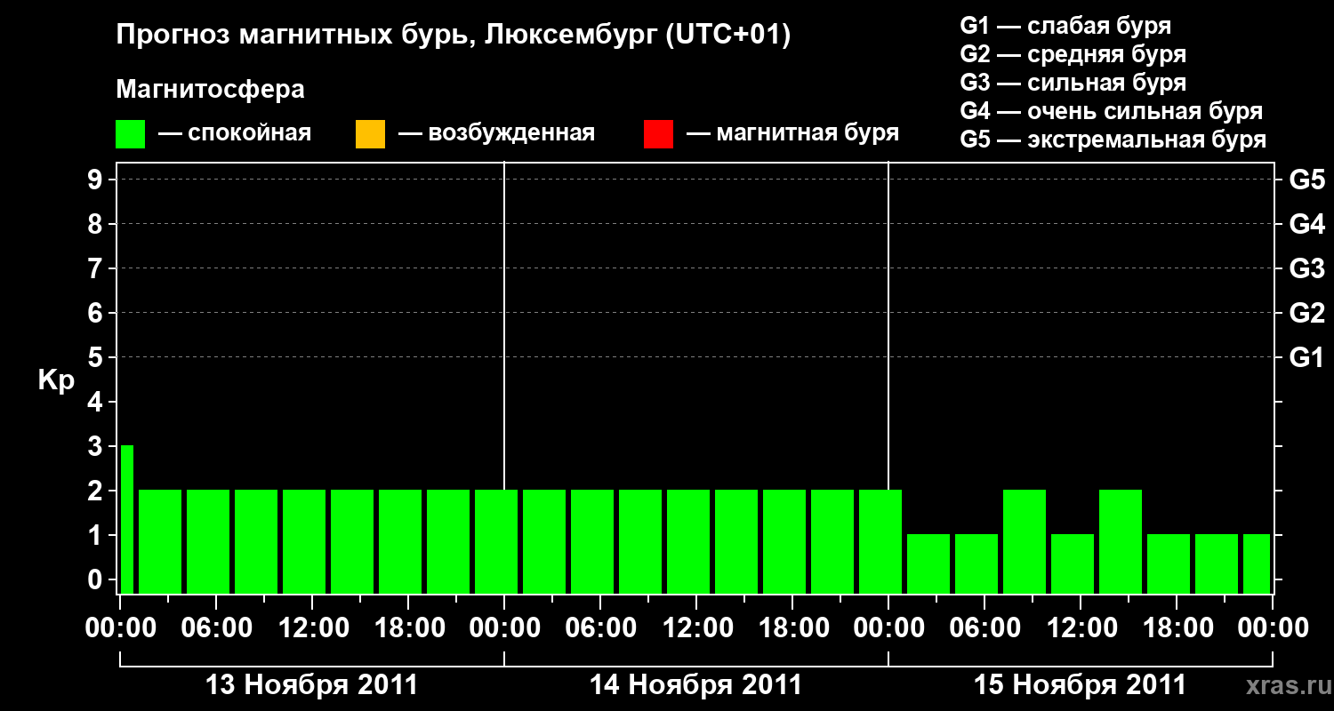 Прогноз магнитных бурь в Люксембурге — 13 ноября 2011 года