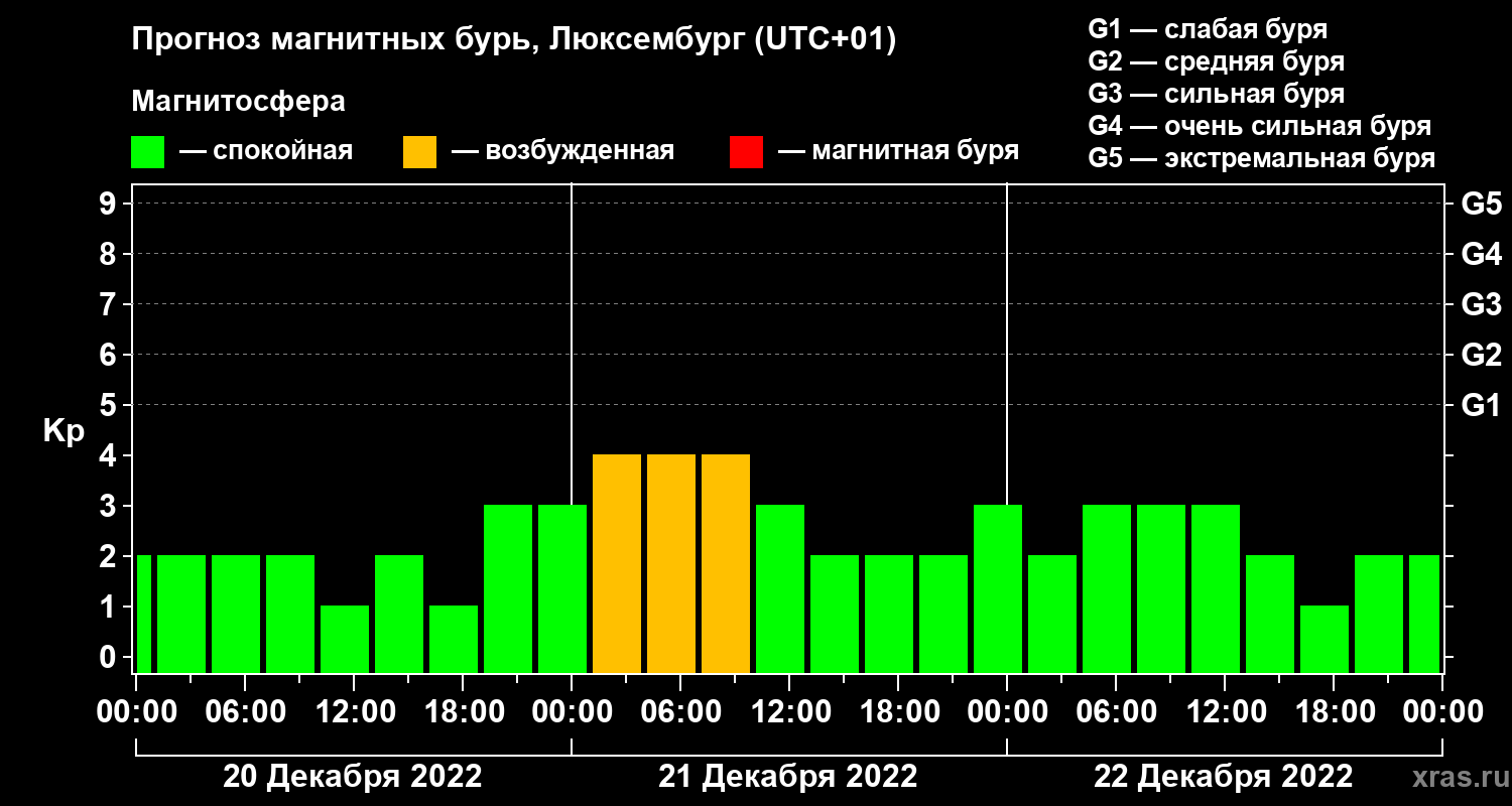 Прогноз магнитных бурь в Люксембурге — 20 декабря 2022 года
