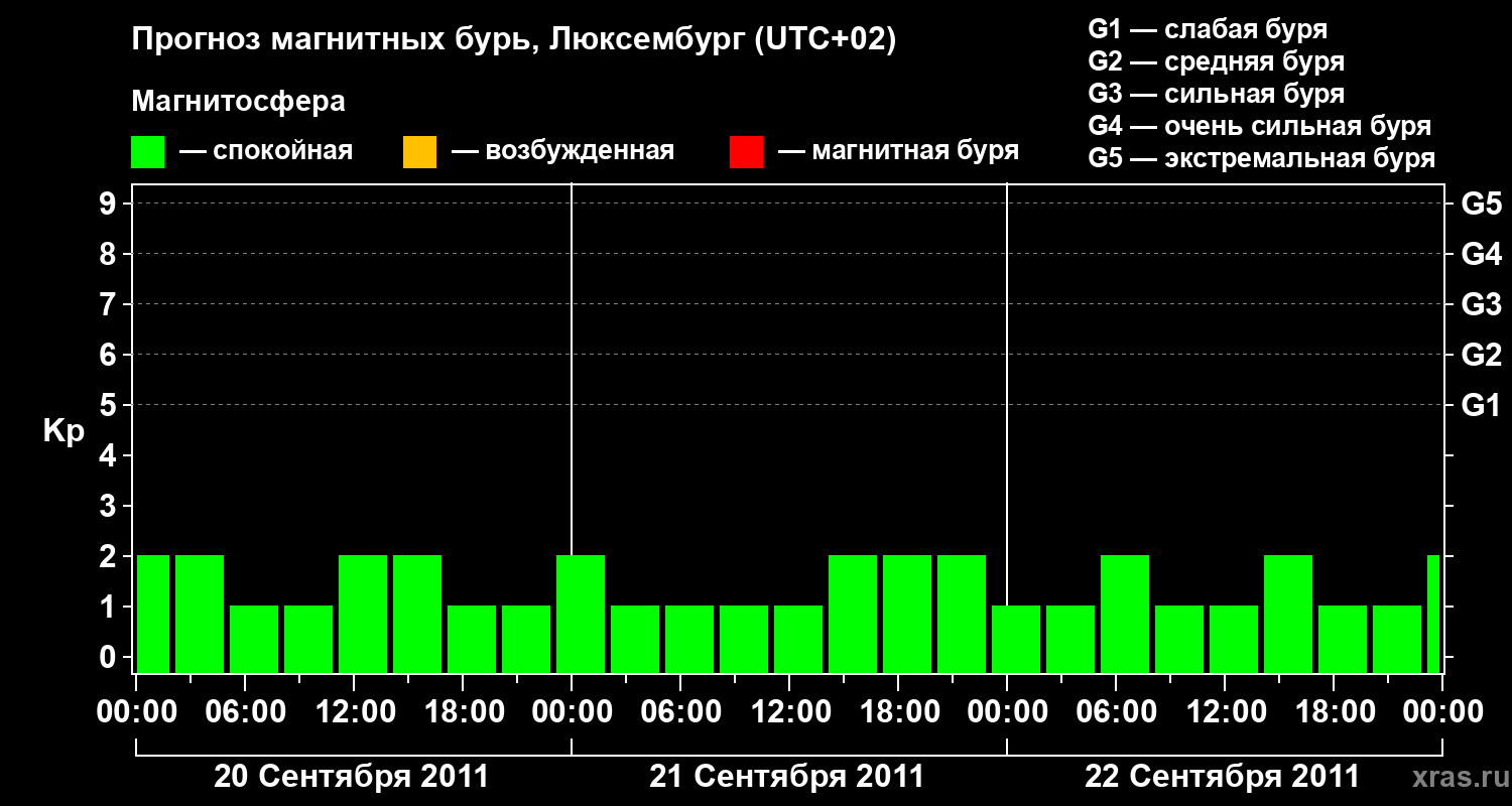 Прогноз магнитных бурь в Люксембурге — 20 сентября 2011 года