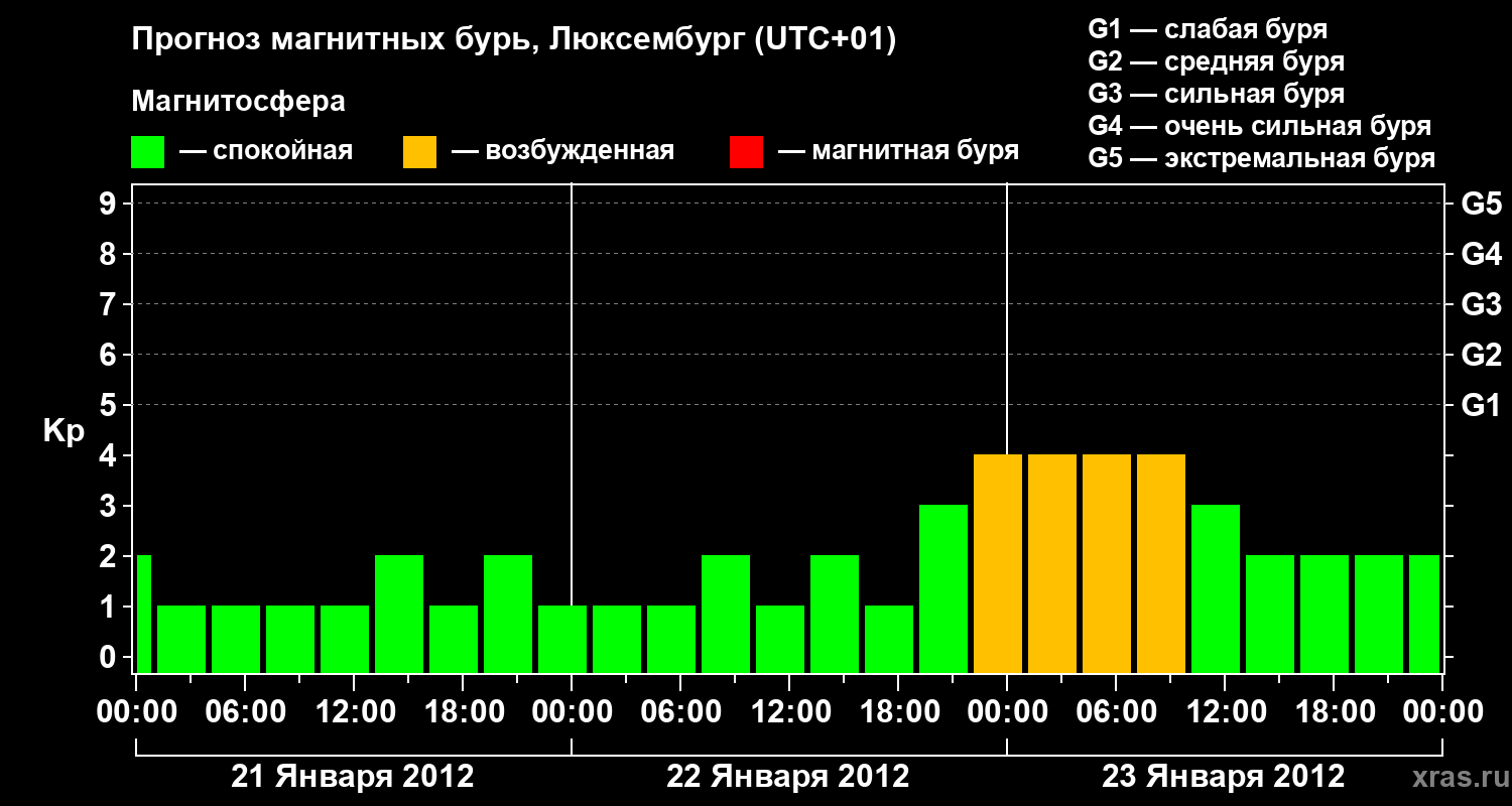 Прогноз магнитных бурь в Люксембурге — 21 января 2012 года